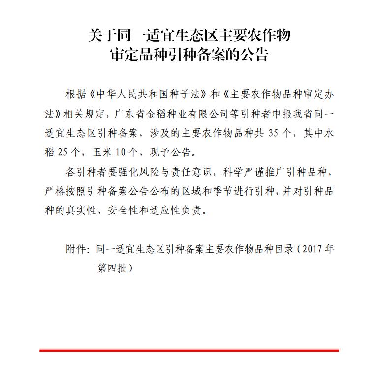 關于同一適宜生態區主要農作物審定品種引種備案的公告