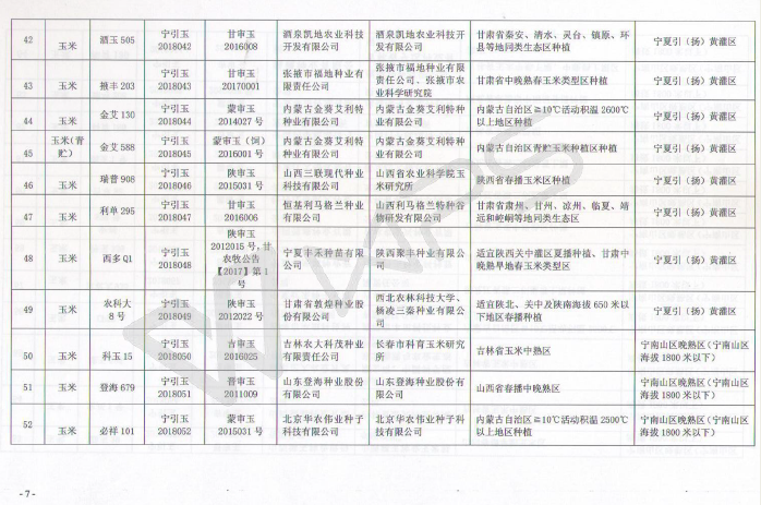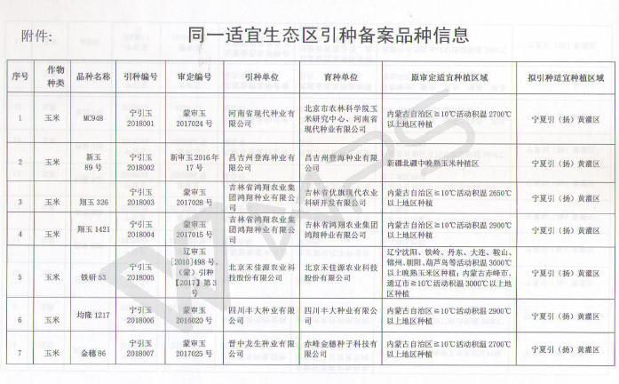 寧夏回族自治區2018年同一適宜生態區引種備案品種的公告