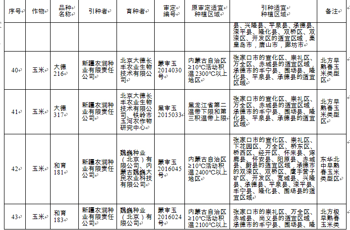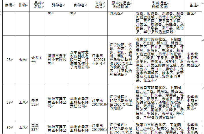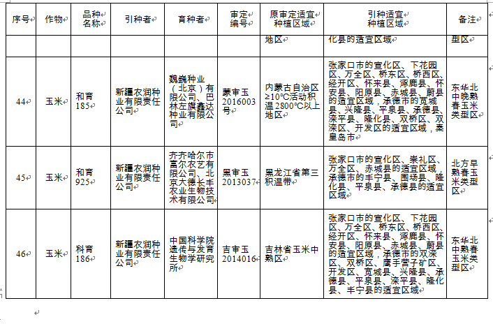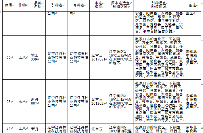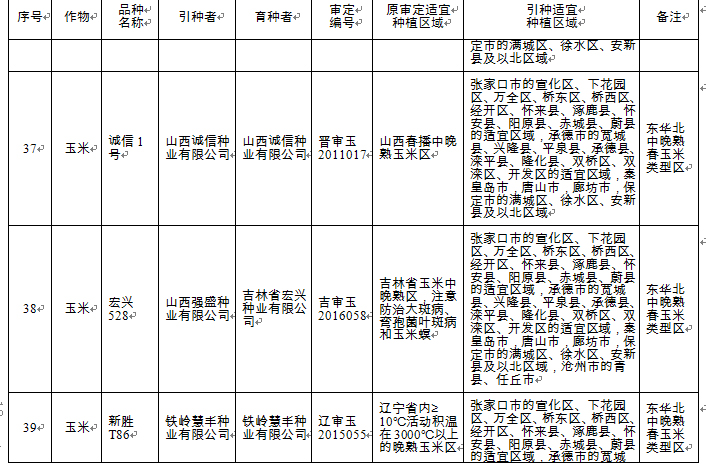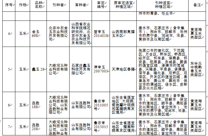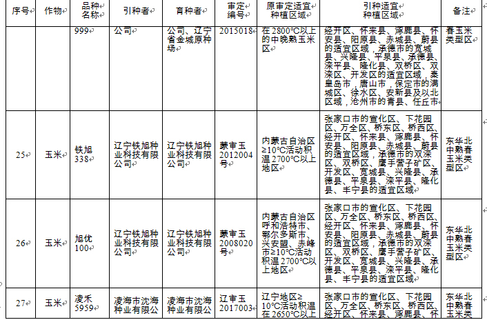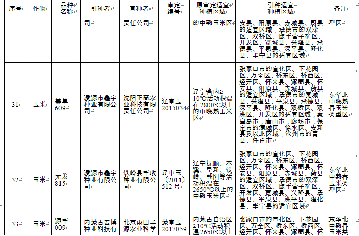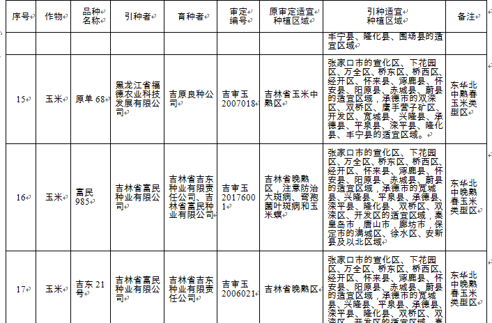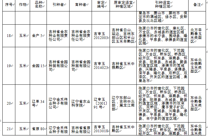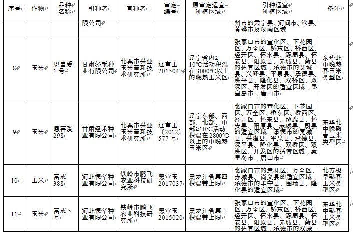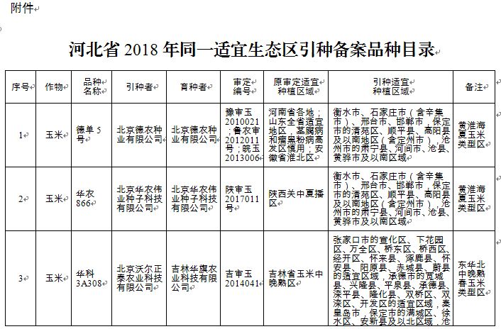 附件:河北省2018年同一適宜生態區引種備案品種目錄