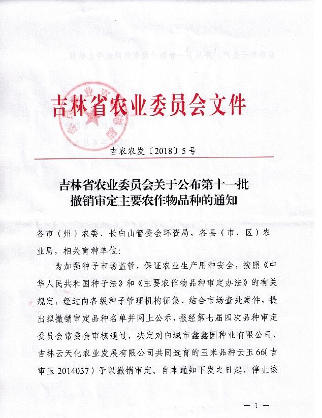 • 吉林省關于擬對48個品種撤銷審定的公示