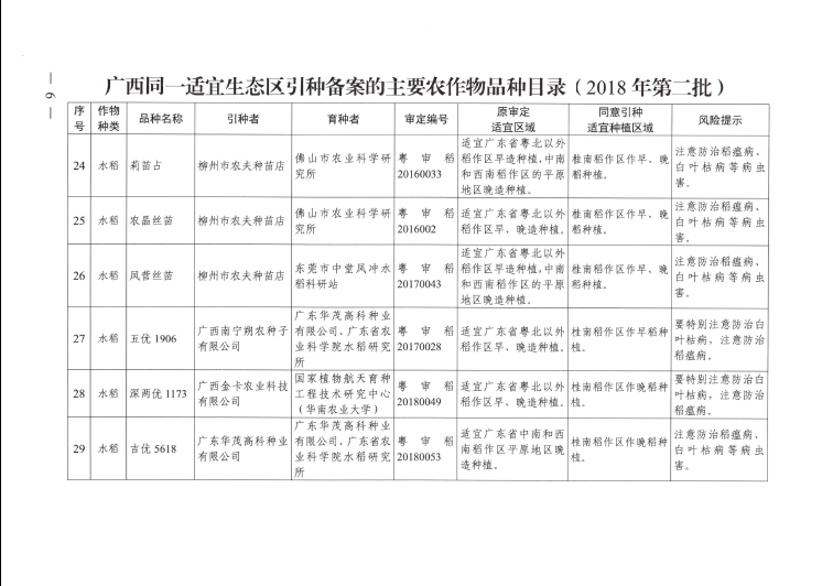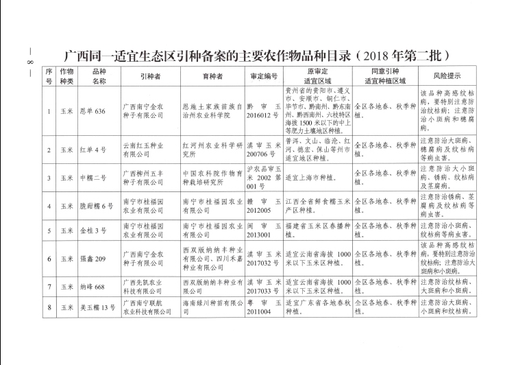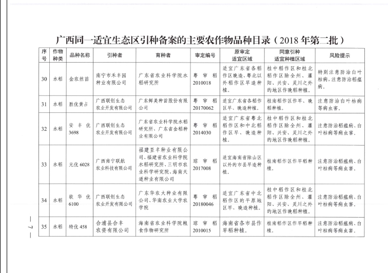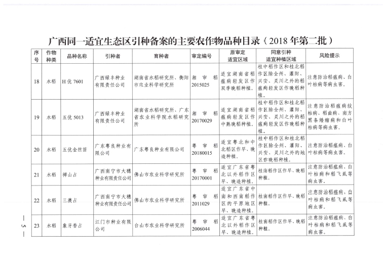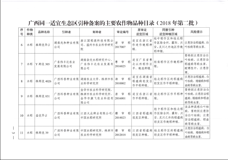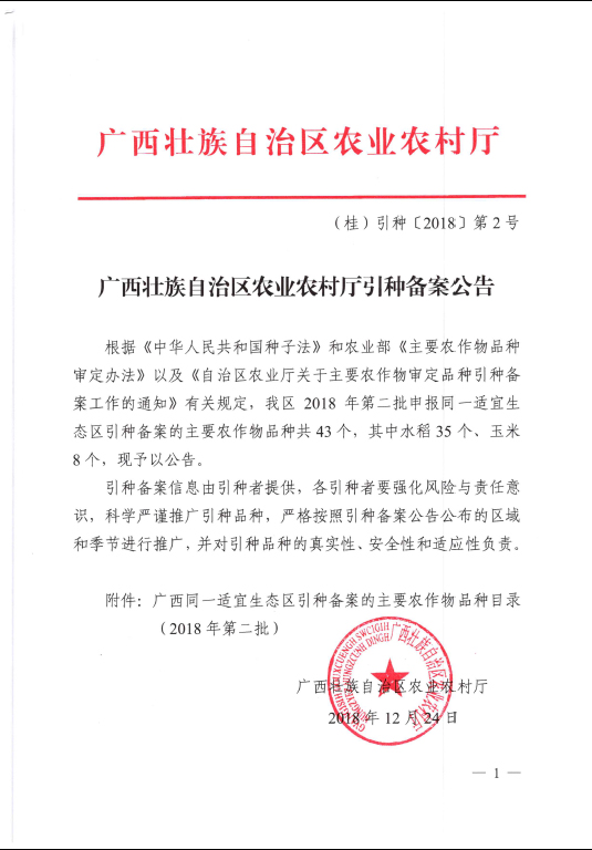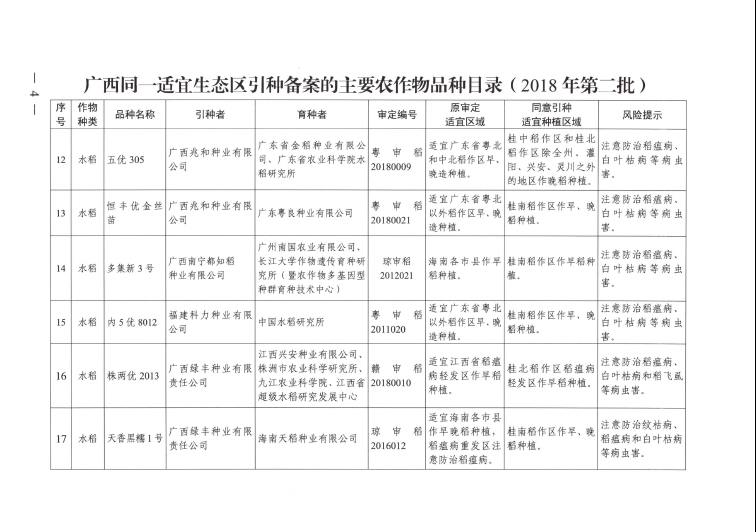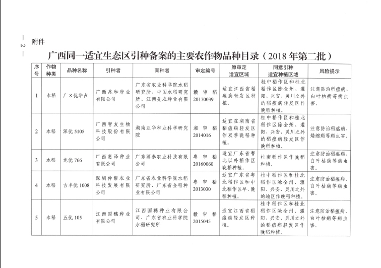 廣西壯族自治區農業農村廳引種備案公告(2018年)