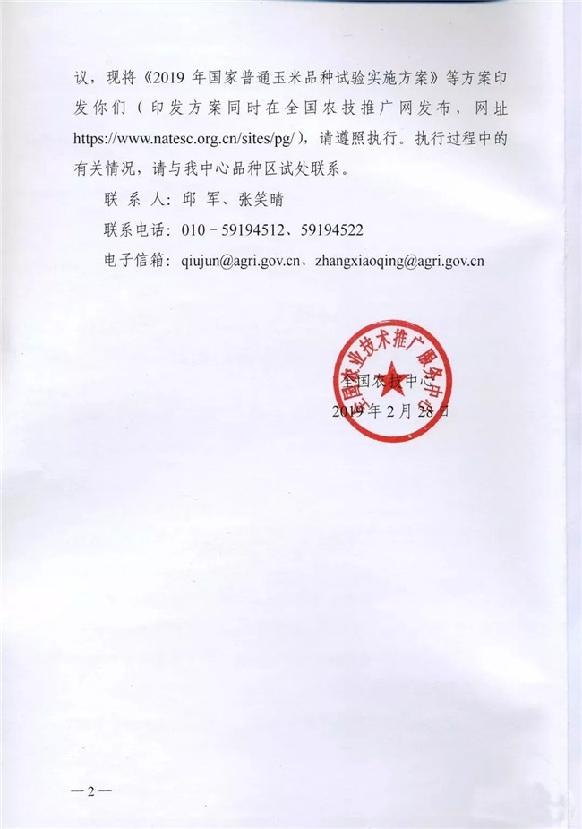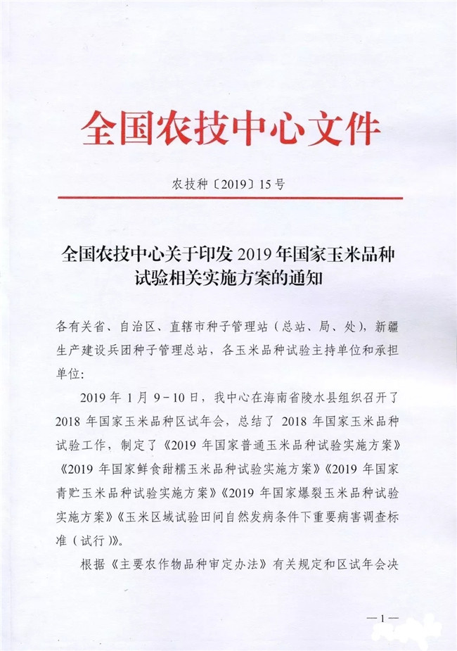 全國農技中心關于印發2019年國家玉米品種試驗相關實施方案的通知