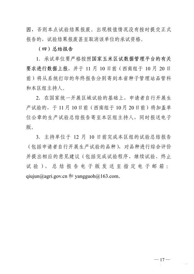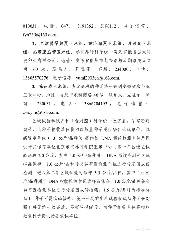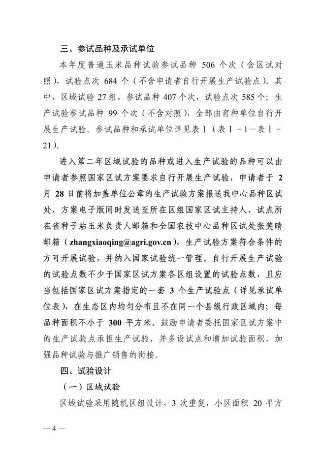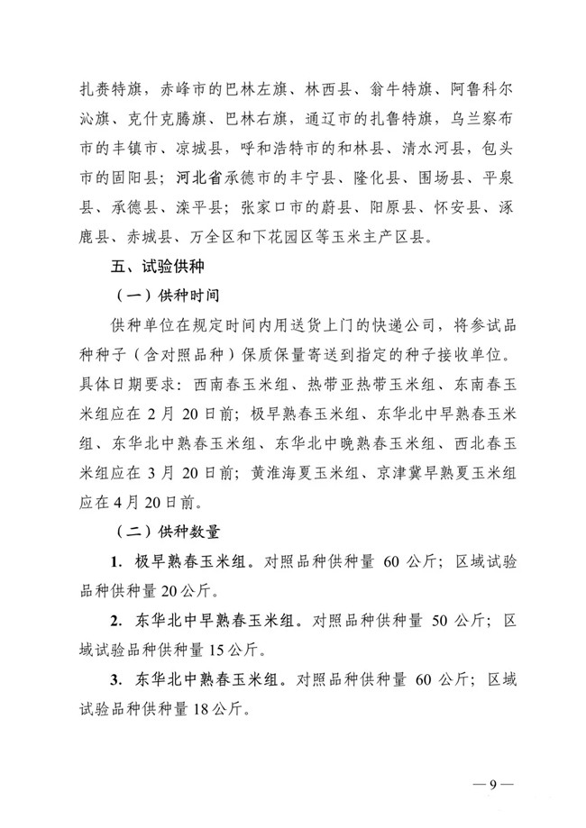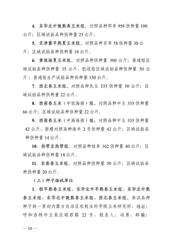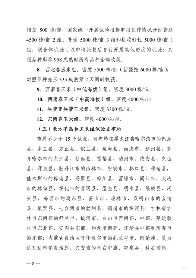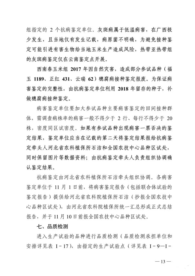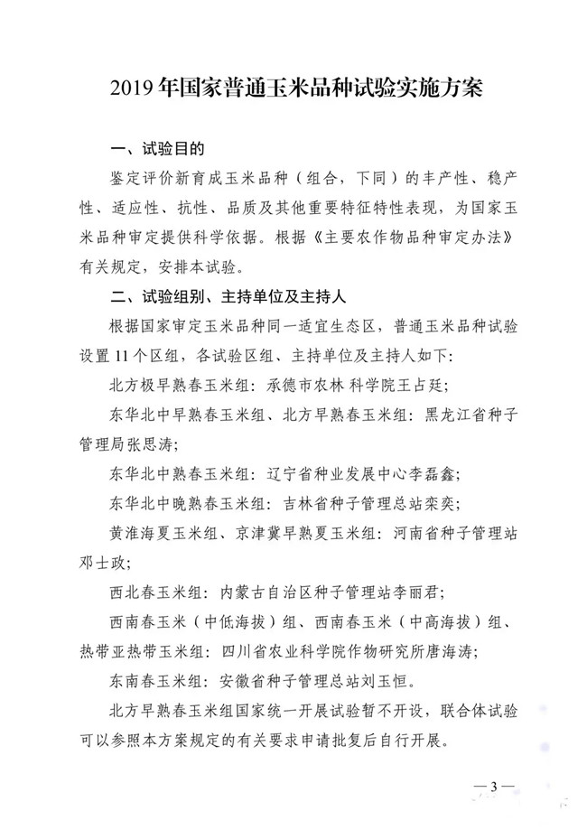 以下為《2019年國家普通玉米品種試驗實施方案》: