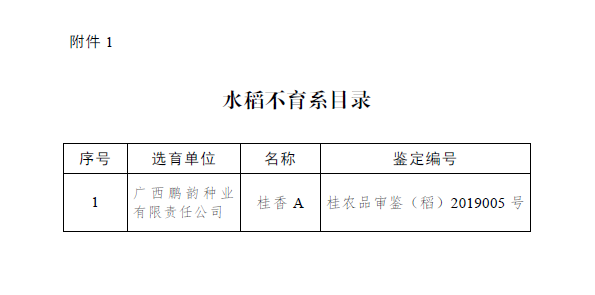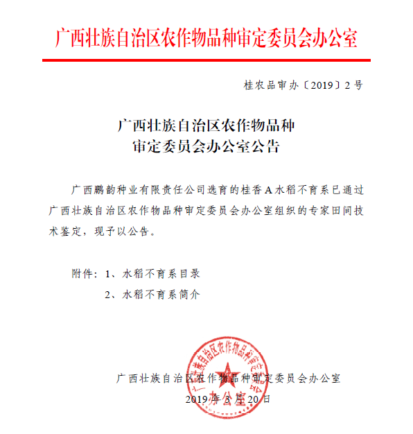 廣西壯族自治區農作物品種審定委員會辦公室公告