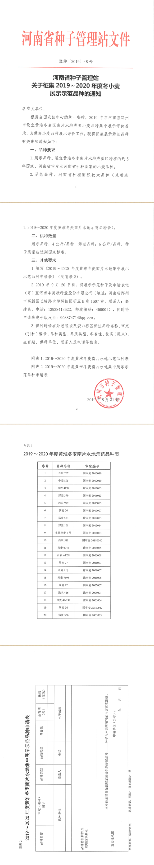 河南征集2019~2020年冬小麥展示示范品種通知