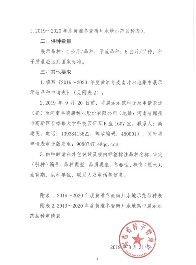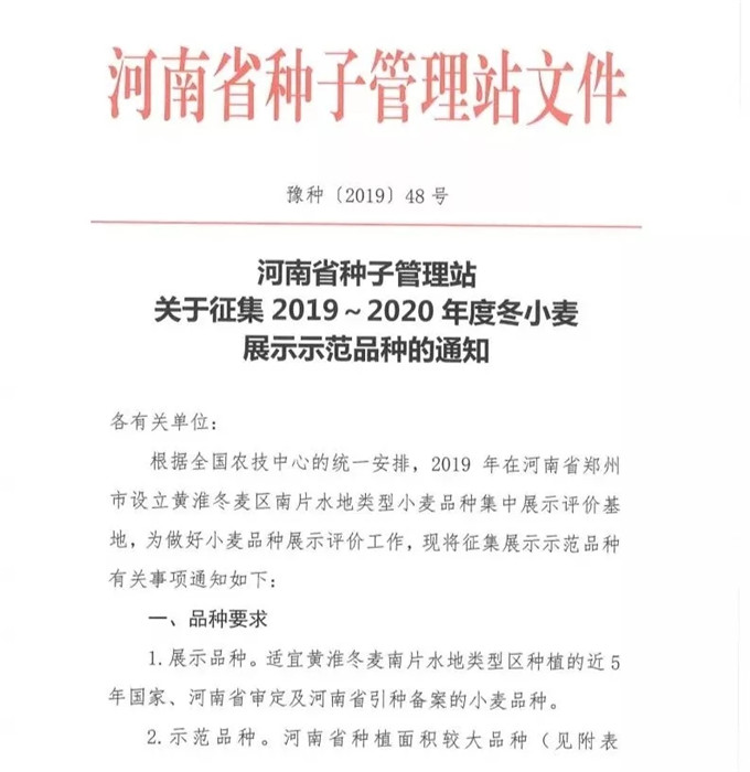 河南開始征集2019-2020年度冬小麥展示示范品種了!