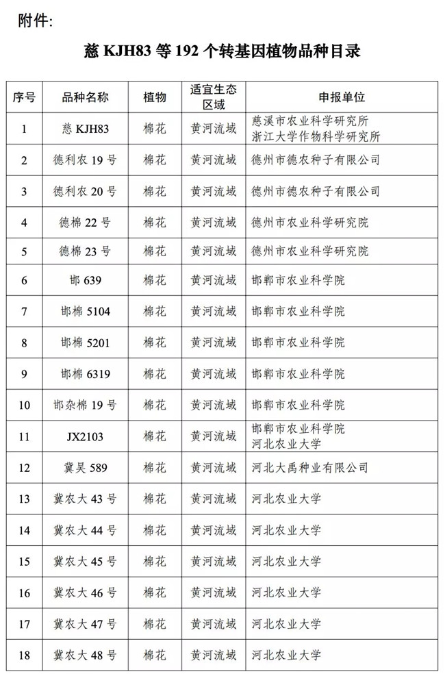 關于慈KJH83等192個轉基因植物品種命名的公示