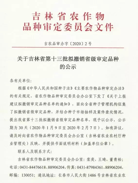天津|擬撤銷主要農作物品種審定(第二批)公示