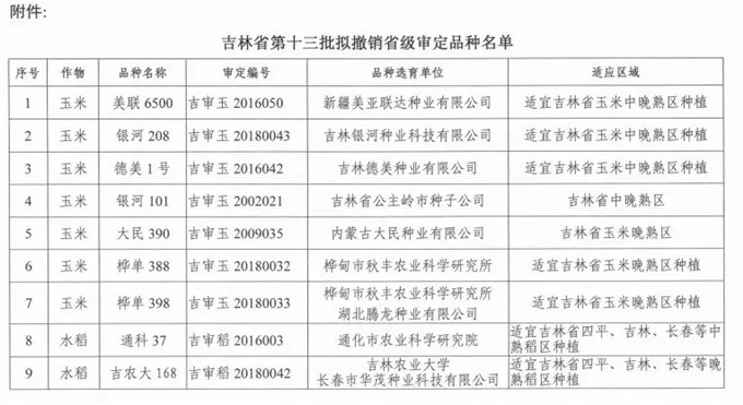 • 江蘇省第三批撤銷引種備案主要農作物品種目錄