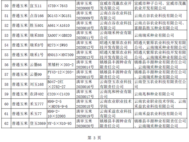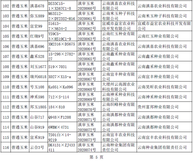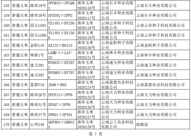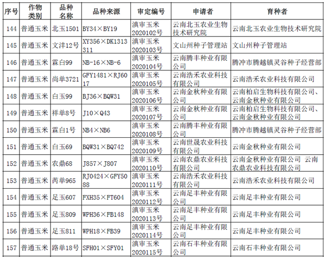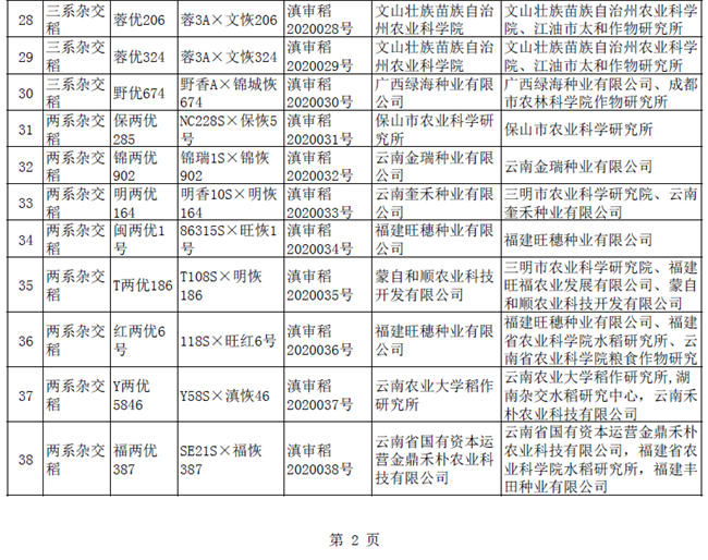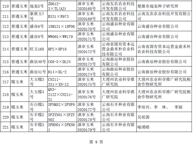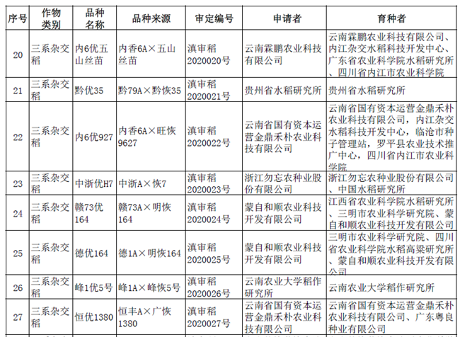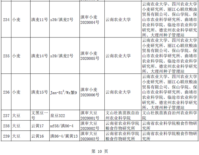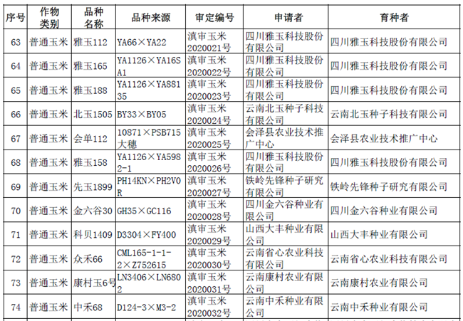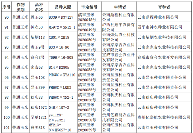 根據《中華人民共和國種子法》和農業農村部《主要農作物品種審定辦法》的規定,云南省農作物品種審定委員會于2020年7月31日在昆明召開了云南省第九屆農作物品種審定委員會主任委員會第五次會議,審定通過了稻、玉米、大豆、小麥作物新品種246個(附件1,附件5);撤銷審定玉米品種4個(附件2);更改品種名稱玉米品種1個(附件3);更正審定意見玉米品種1個(附件4)。