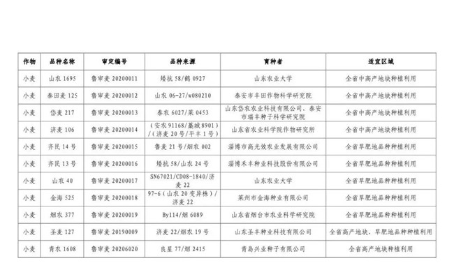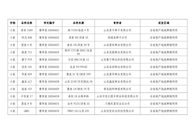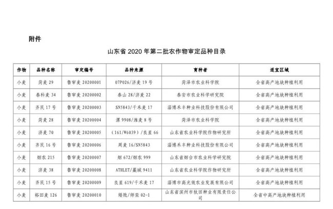 七屆山東省農作物品種審定委員會第六次常委會議審定通過了小麥、水稻等2種主要農作物41個新品種(審定品種目錄見附件),品種名稱等信息經公示無異議。