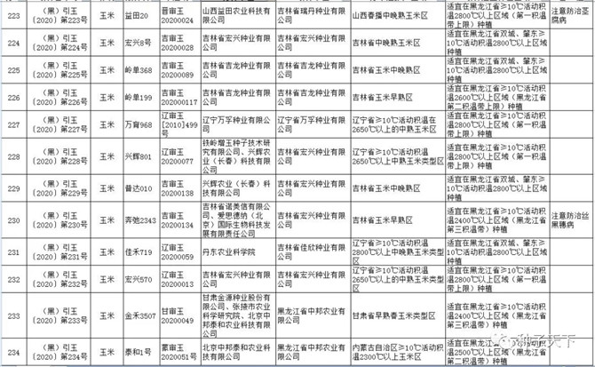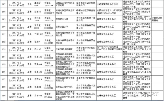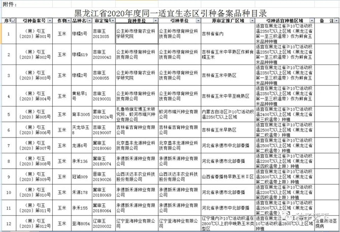 關于印發《黑龍江省 2020 年度同一適宜生態區主要農作物品種引種備案目錄》的通知