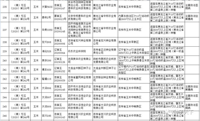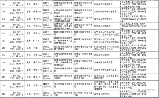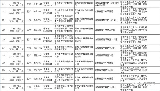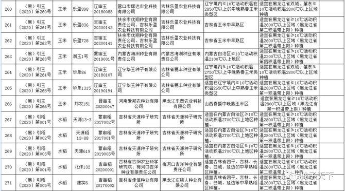 根據《種子法》和《主要農作物品種審定辦法》相關規定,對符合要求的 266 個玉米品種、 21 個水稻品種和 7 個大豆品種予以備案。現將引種備案編號和引種者提交的品種名稱、審定編號、育種者、引種者、原審定種植區域、引種適宜種植區域等信息發給你們。