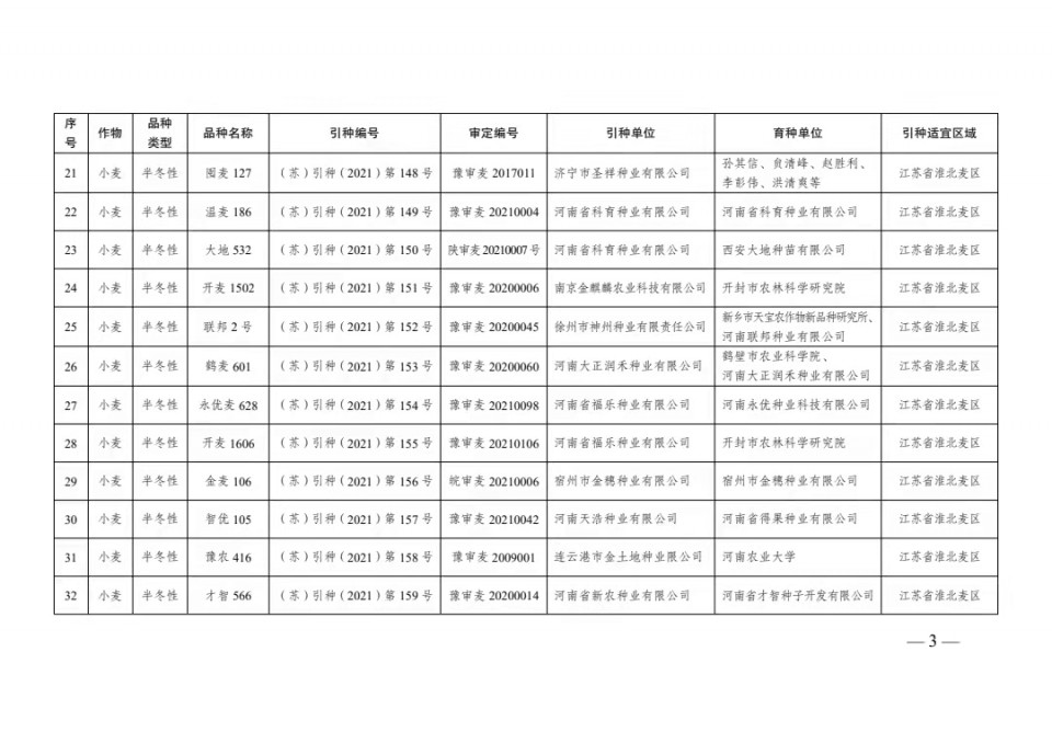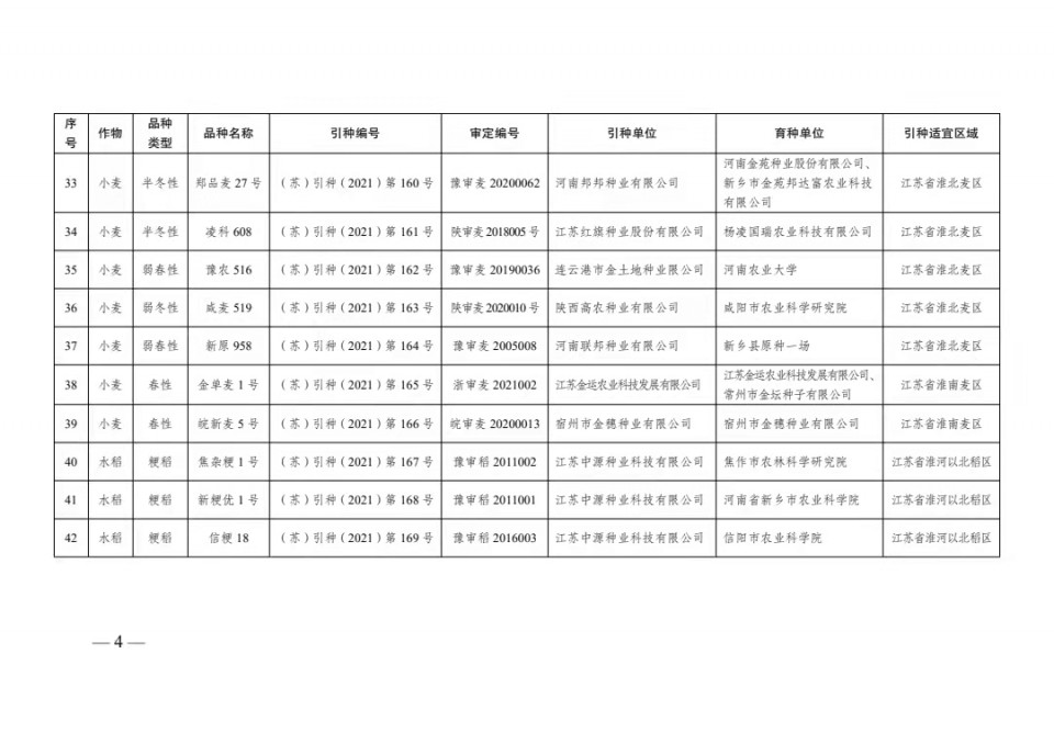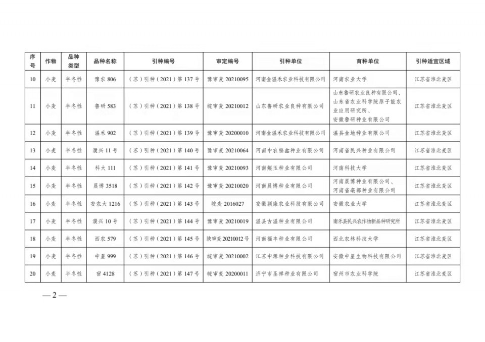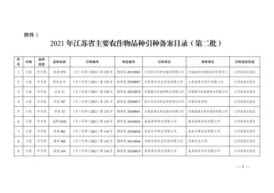 附件:1、2021年江蘇省主要農作物品種引種備案目錄(第二批)