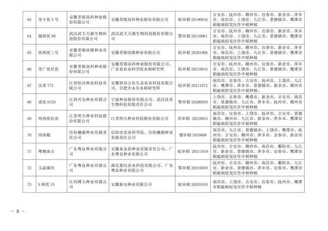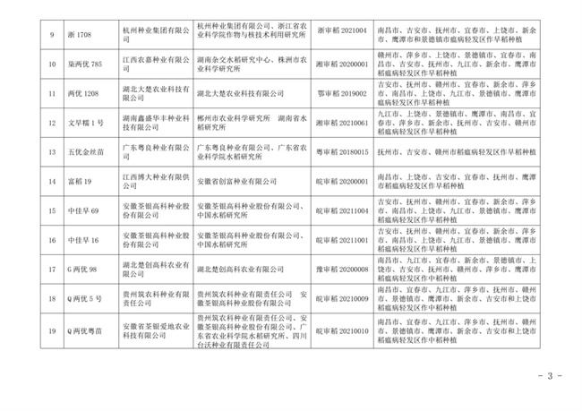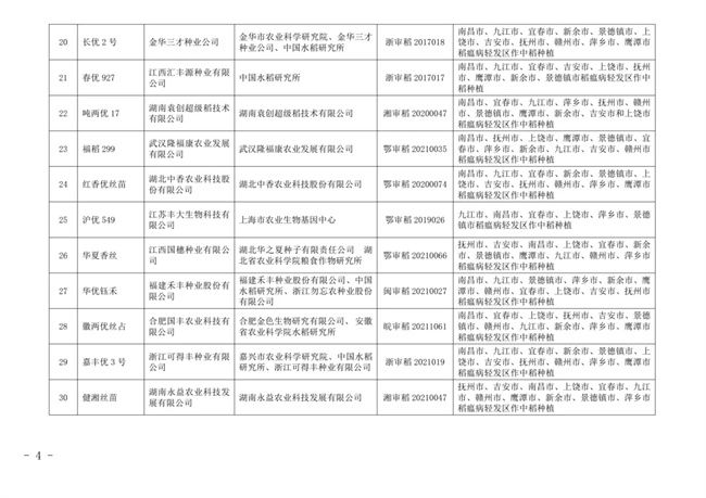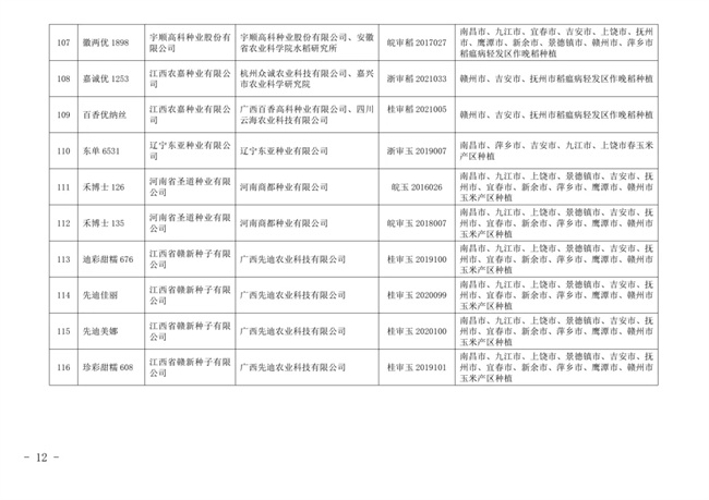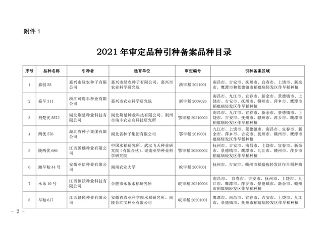 根據《中華人民共和國種子法》《主要農作物品種審定辦法》等有關規定,“嘉創55”等116個主要農作物品種申請在我省同一適宜生態類型區引種,經書面審查和公示核查等程序,引種者提交的材料齊全,符合引種規定。引種備案公告號統一為(贛)引種〔2021〕第001號。引種備案品種被原審定機關撤銷審定的,備案自動撤銷。