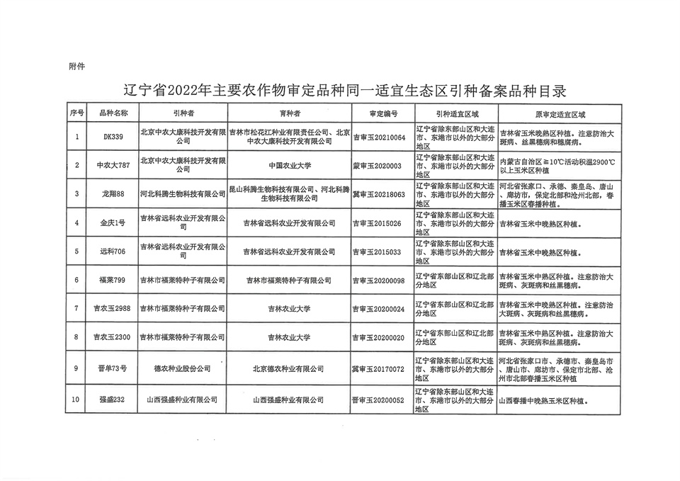 附件:遼寧省2022年(nian)主要農作物(wu)審(shen)定品種(zhong)同一適宜生態區 引種(zhong)備案品種(zhong)目錄(lu)