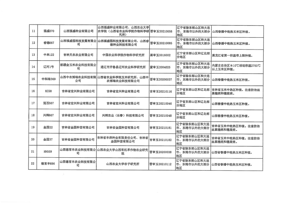 根(gen)據《中(zhong)華人民共和國種(zhong)(zhong)(zhong)(zhong)子(zi)法》《主要農作(zuo)物(wu)(wu)品種(zhong)(zhong)(zhong)(zhong)審(shen)(shen)(shen)定(ding)辦法》及《國家農作(zuo)物(wu)(wu)品種(zhong)(zhong)(zhong)(zhong)審(shen)(shen)(shen)定(ding)委(wei)員會關于(yu)印發(fa)國家審(shen)(shen)(shen)定(ding)品種(zhong)(zhong)(zhong)(zhong)同一(yi)適宜(yi)生態區的(de)通(tong)知》(國品審(shen)(shen)(shen)〔2016〕1號)的(de)相關規定(ding),遼(liao)寧省農作(zuo)物(wu)(wu)品種(zhong)(zhong)(zhong)(zhong)審(shen)(shen)(shen)定(ding)委(wei)員會辦公室(shi)受理通(tong)過引(yin)種(zhong)(zhong)(zhong)(zhong)備案玉米(mi)品種(zhong)(zhong)(zhong)(zhong)125個。現將引(yin)種(zhong)(zhong)(zhong)(zhong)備案品種(zhong)(zhong)(zhong)(zhong)的(de)品種(zhong)(zhong)(zhong)(zhong)名(ming)稱、引(yin)種(zhong)(zhong)(zhong)(zhong)者、育種(zhong)(zhong)(zhong)(zhong)者、審(shen)(shen)(shen)定(ding)編號、引(yin)種(zhong)(zhong)(zhong)(zhong)適宜(yi)區域、原審(shen)(shen)(shen)定(ding)適宜(yi)區域等信息(xi)予(yu)以通(tong)告。