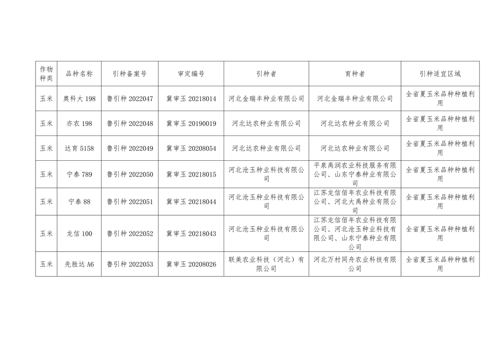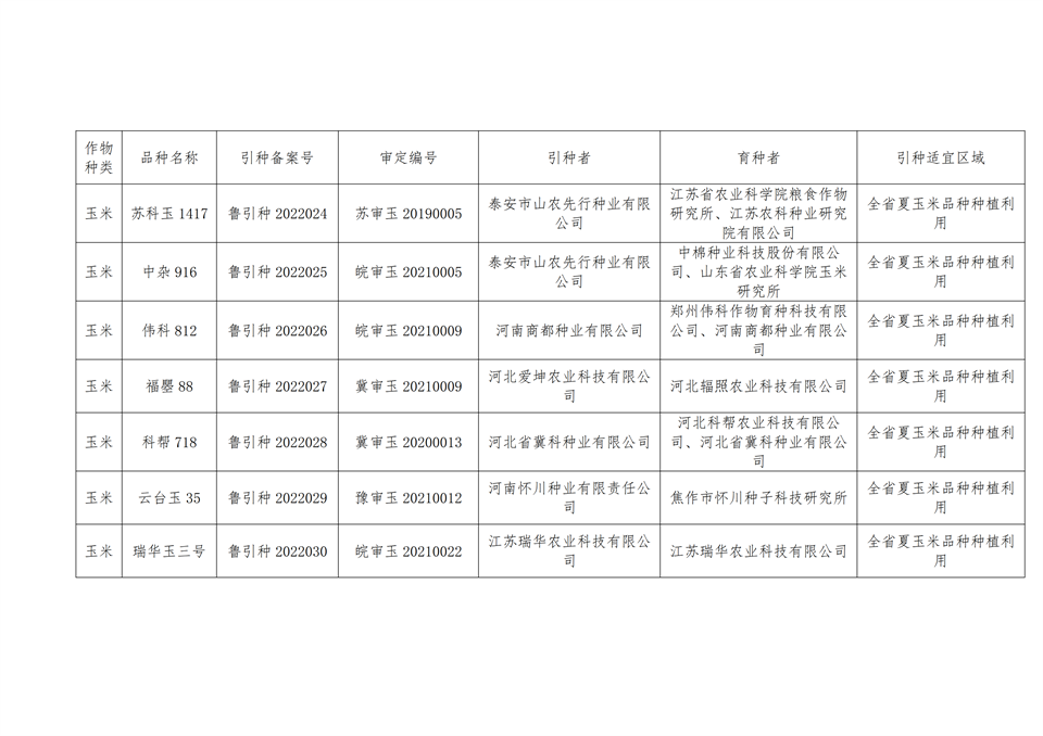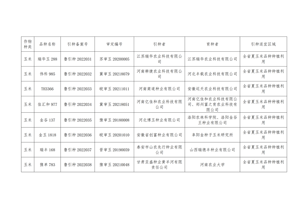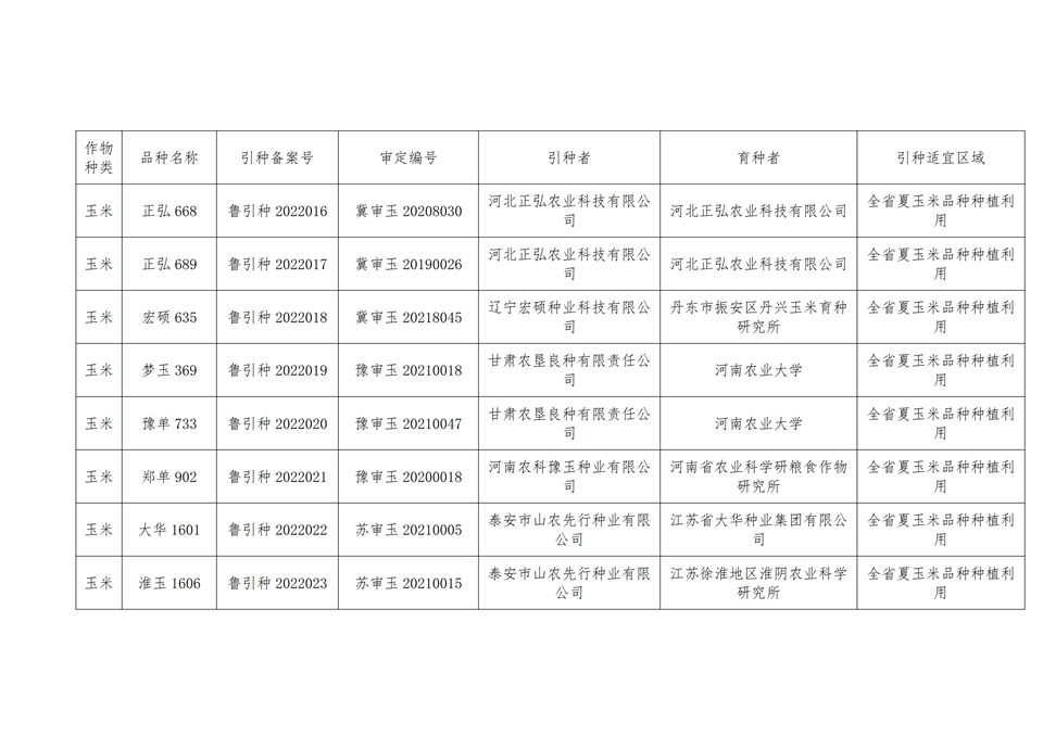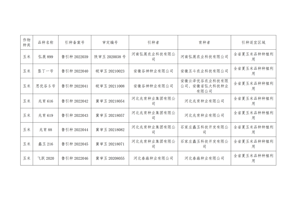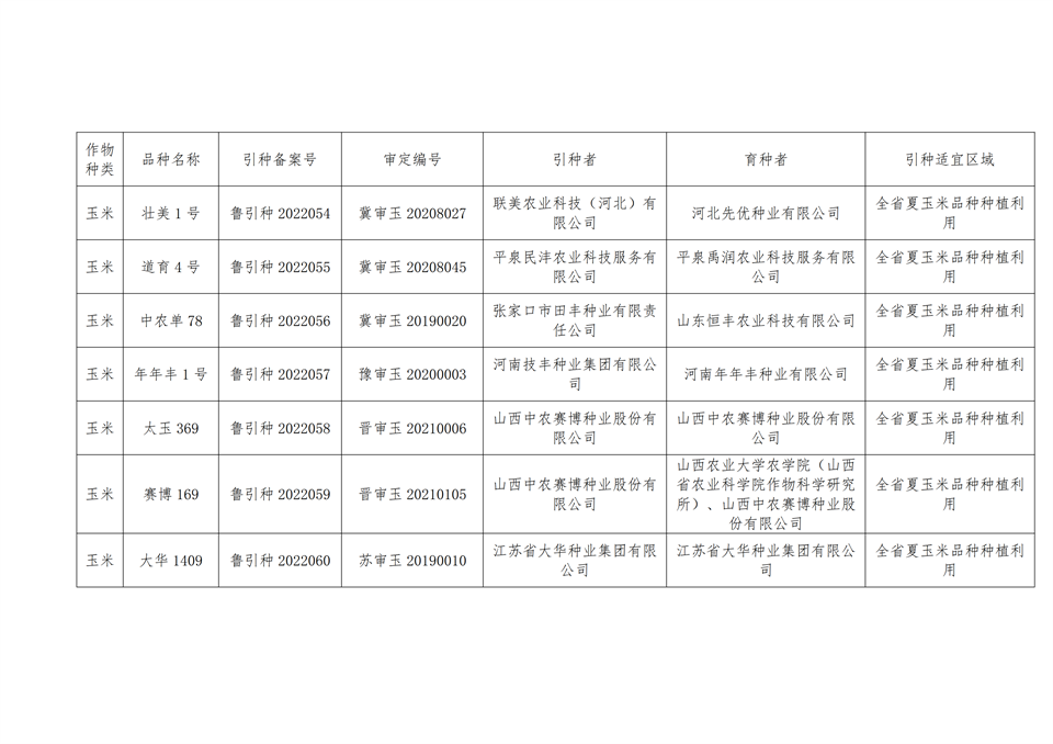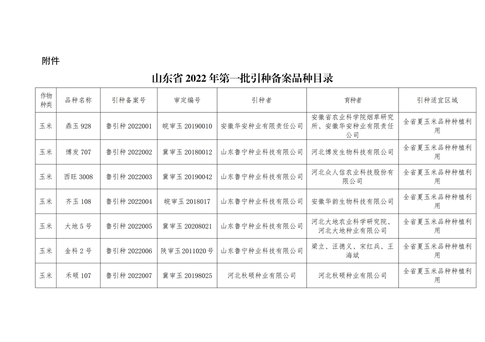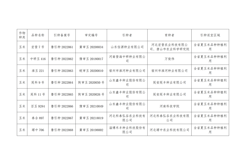關于發布山東省2022年第一批主要農作物引種備案品種的通告