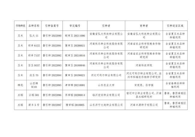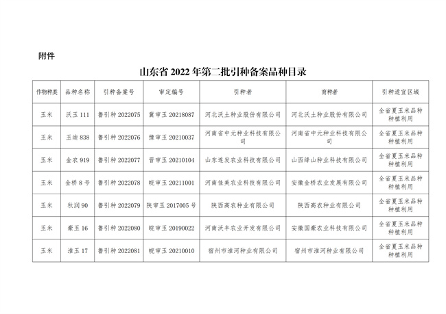 關于發布山東省2022年第二批主要農作物引種備案品種的通告