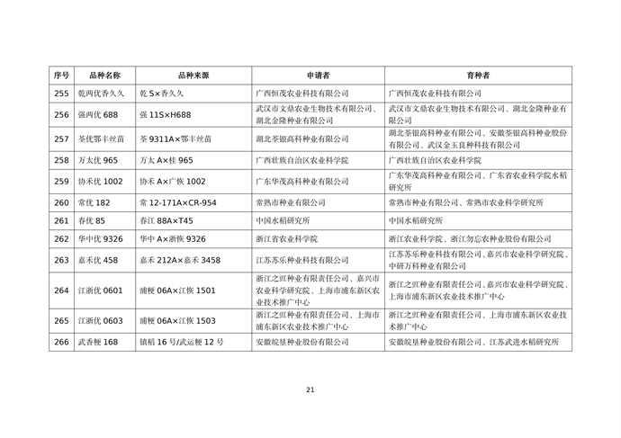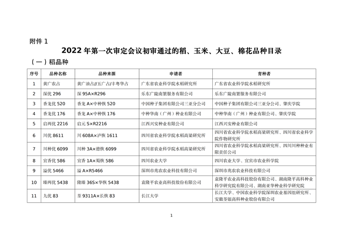 根據《主要農作物品種審定辦法》《農業植物品種命名規定》,現將第四屆國家農作物品種審定委員會第五次(稻、大豆、棉花)及第七次(玉米)品種審定會議初審、復審通過的稻、玉米、大豆、棉花品種及相關信息予以公示,公示期為30日(自2022年7月29 日至2022年8月 27日)。初審通過品種的各試驗點試驗數據、匯總結果等,可登錄全國農技推廣網(www.natesc.org.cn)行業體系“品種區試”欄目查詢。公示期內,如有異議,可向國家農作物品種審定委員會辦公室反映,并提供書面說明材料,包括異議內容、異議人姓名、身份證號碼、手機號碼及電子郵件等聯系方式,異議單位書面說明材料需加蓋單位公章。