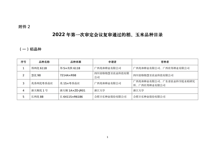 關于第四屆國家農作物品種審定委員會2022年第一次審定會議初審通過品種的公示
