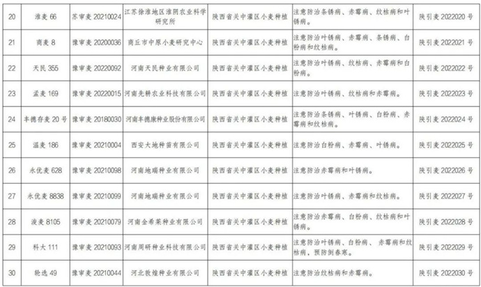陜西省農業農村廳關于公布第十一批引種備案品種的通知
