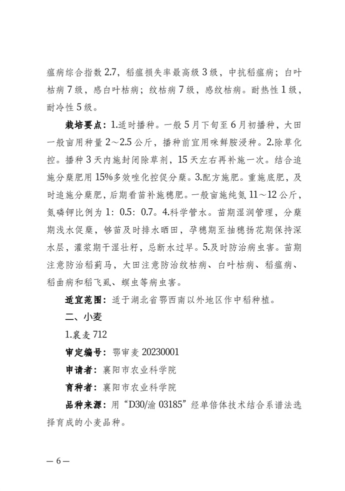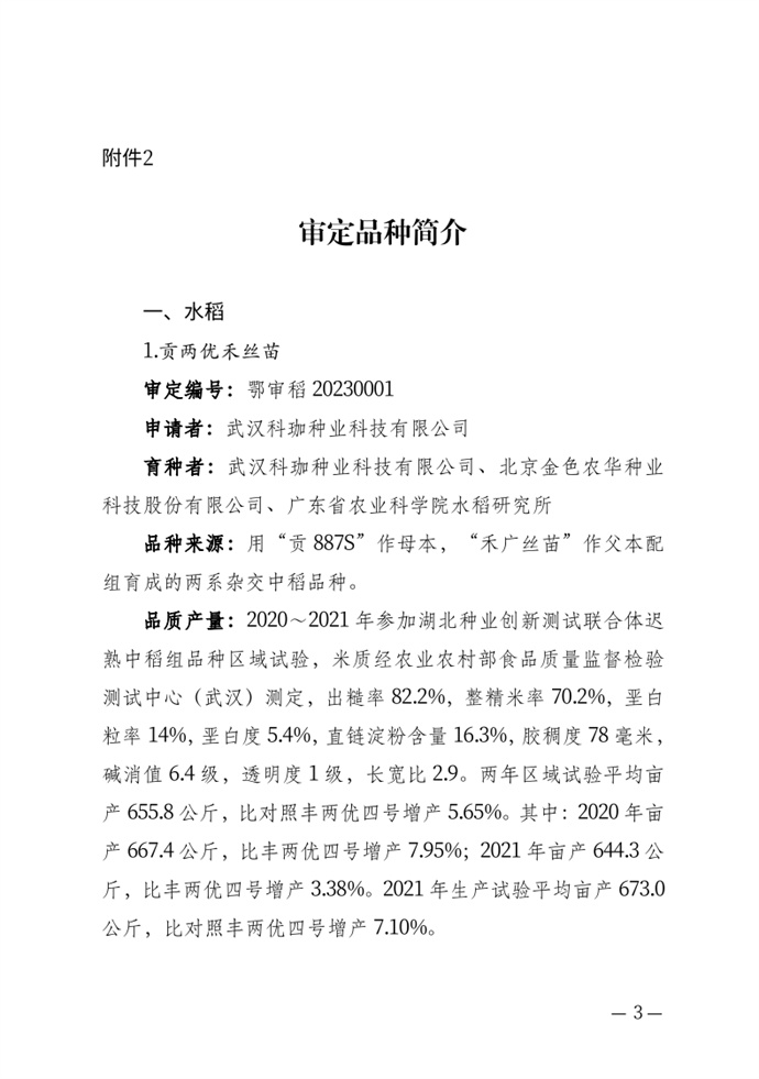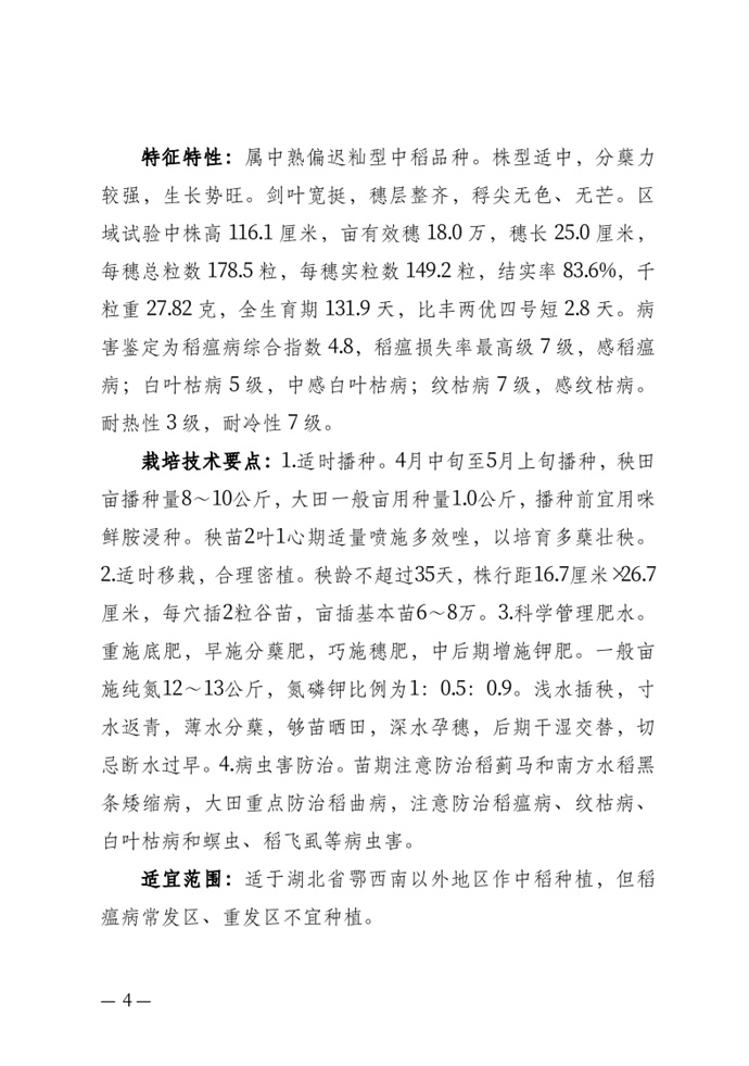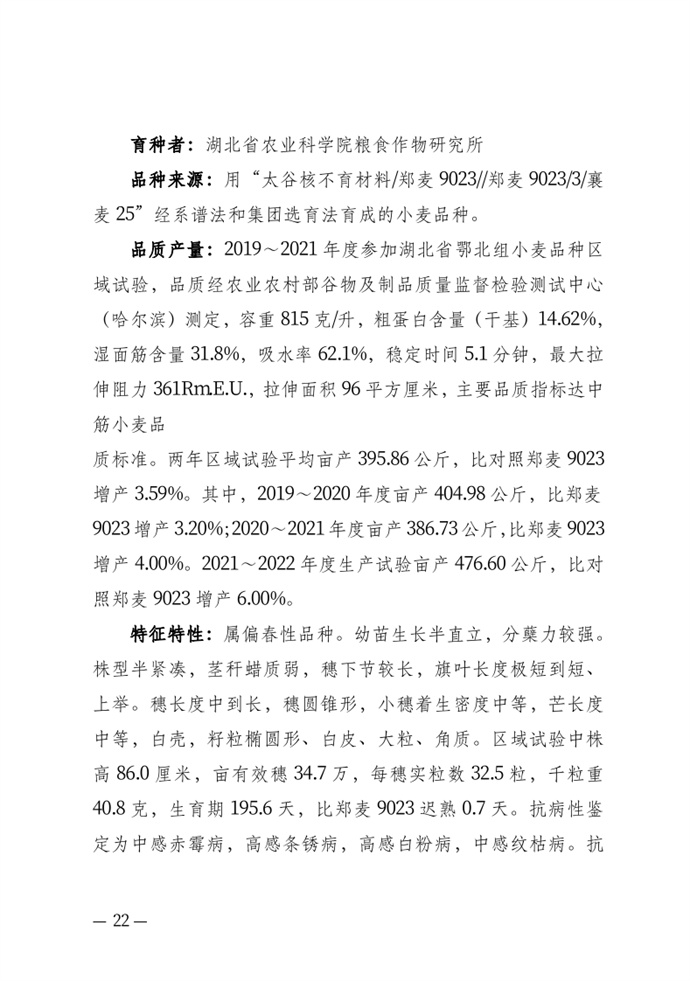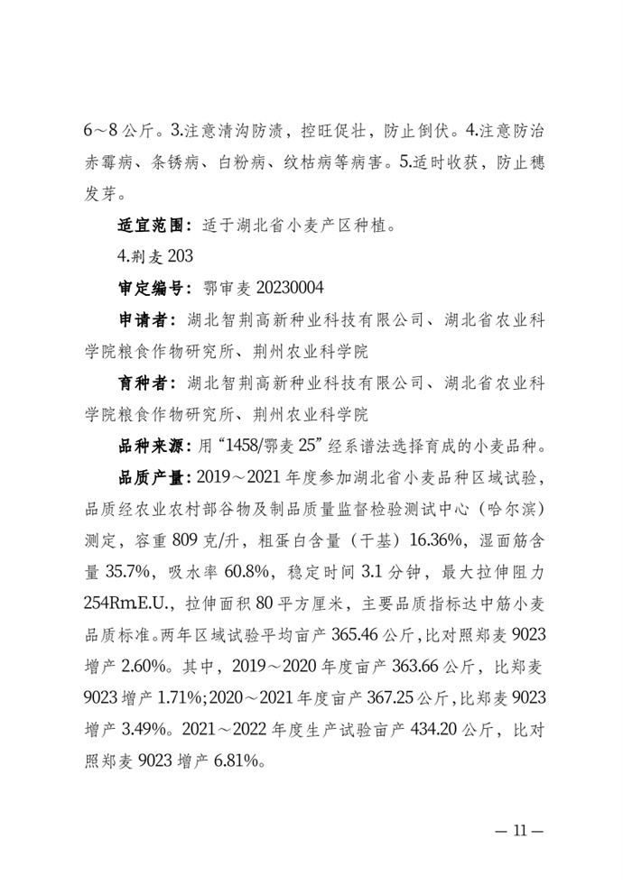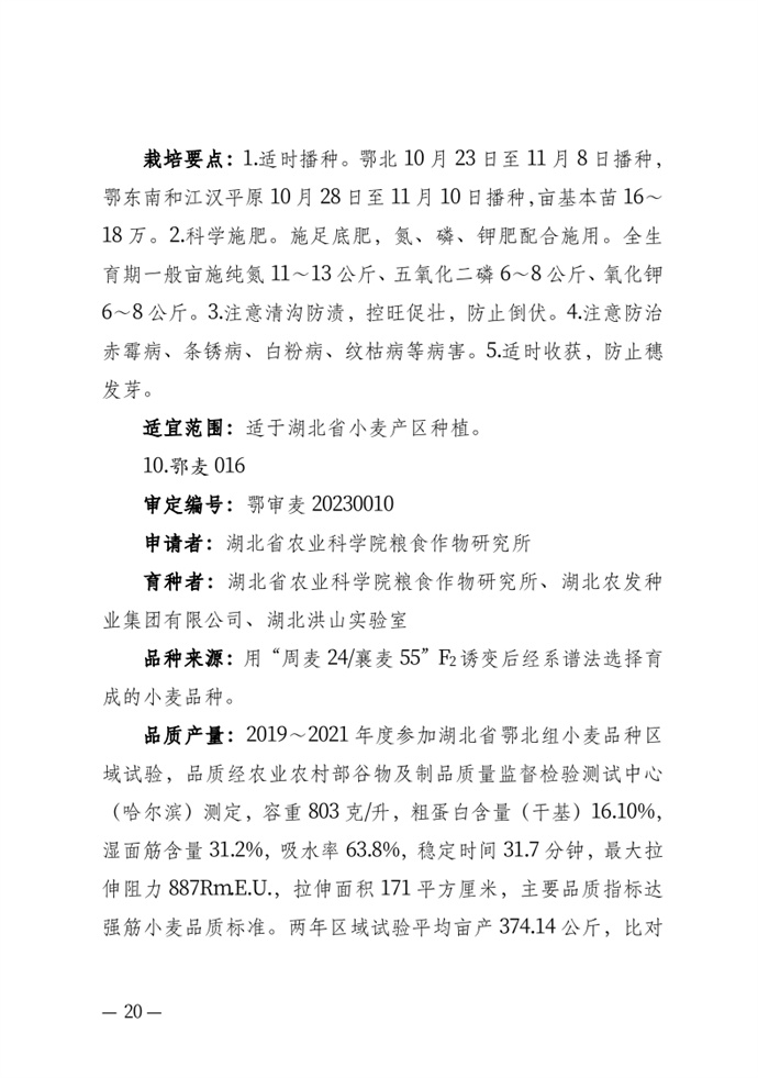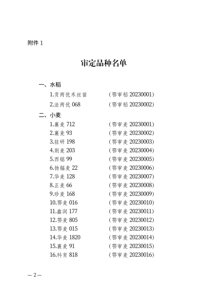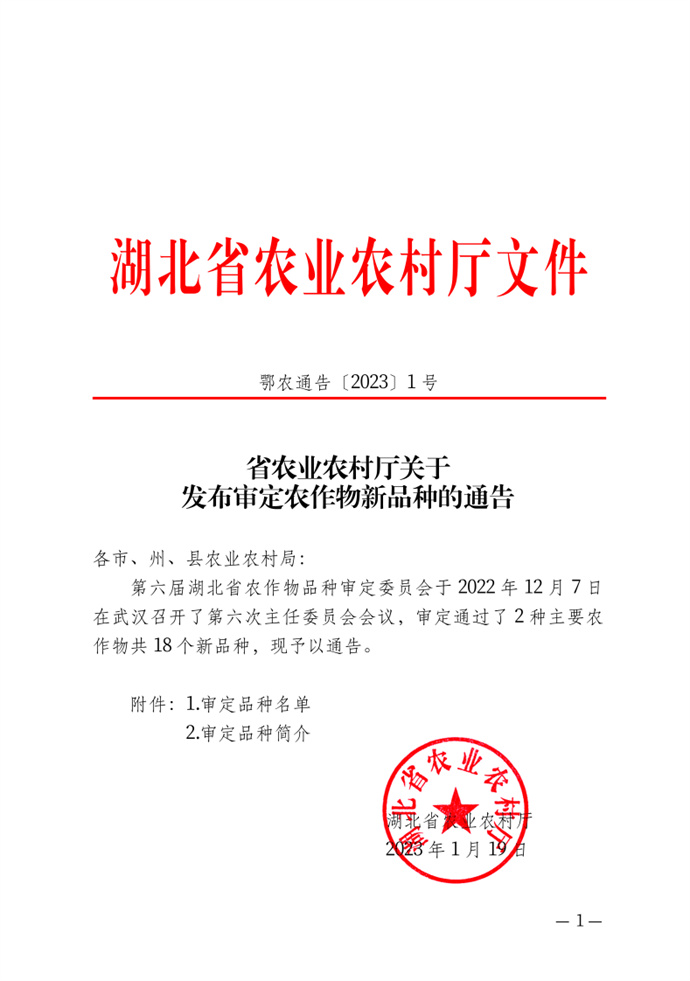 • 湖北省農業農村廳關于發布審定農作物新品種的通