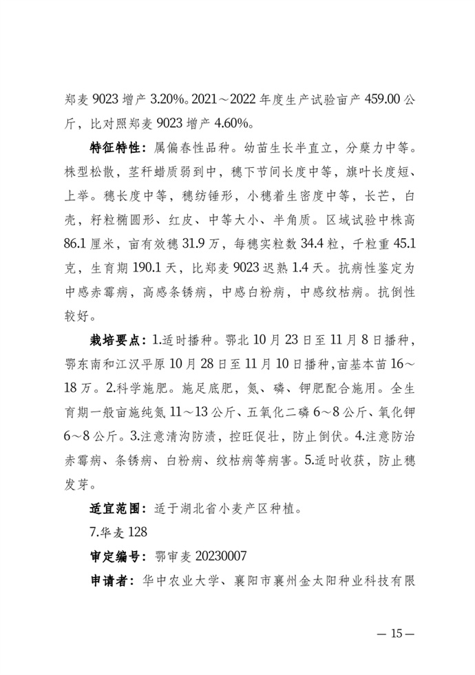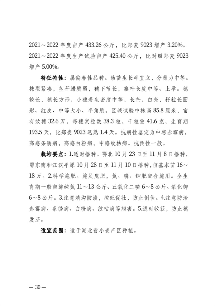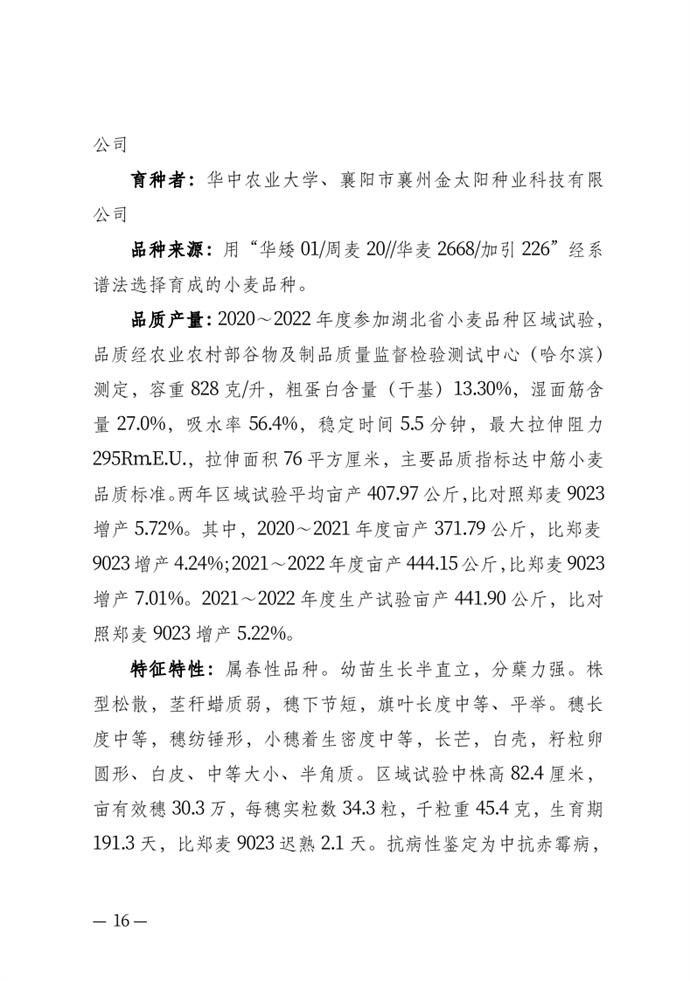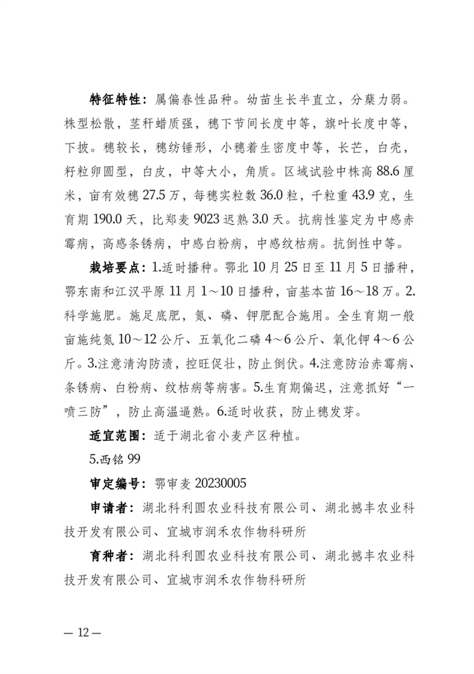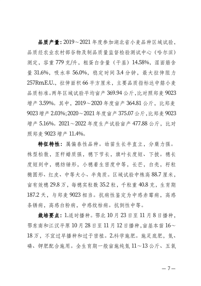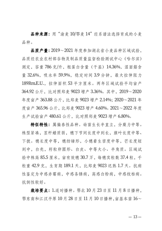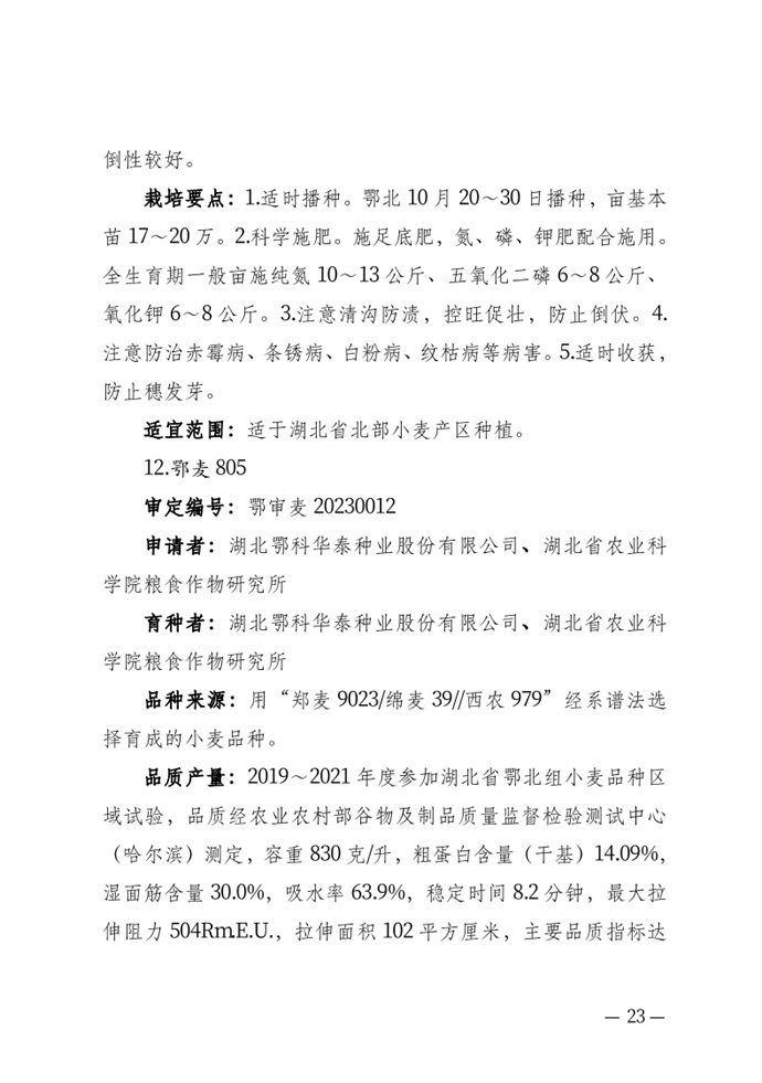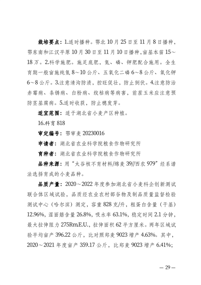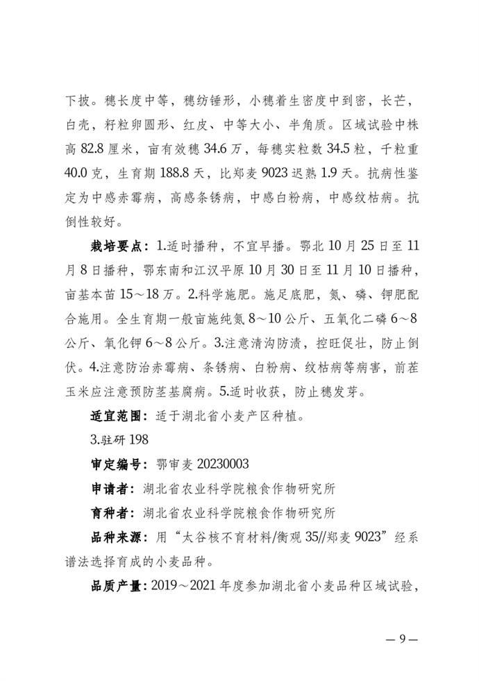 • 湖北省農業農村廳關于發布審定農作物新品種的通