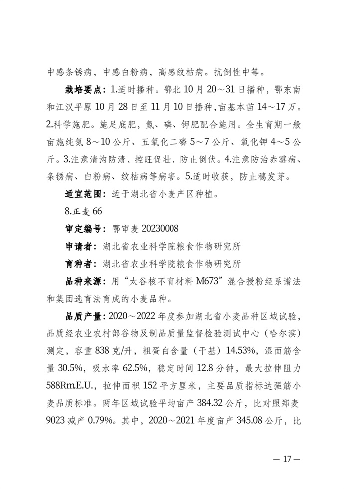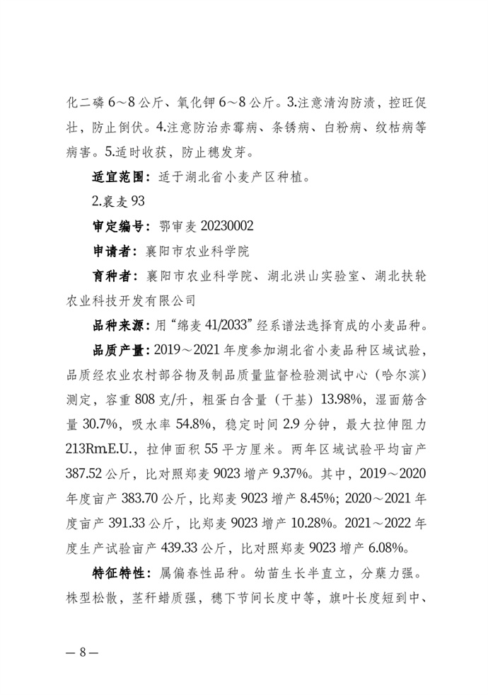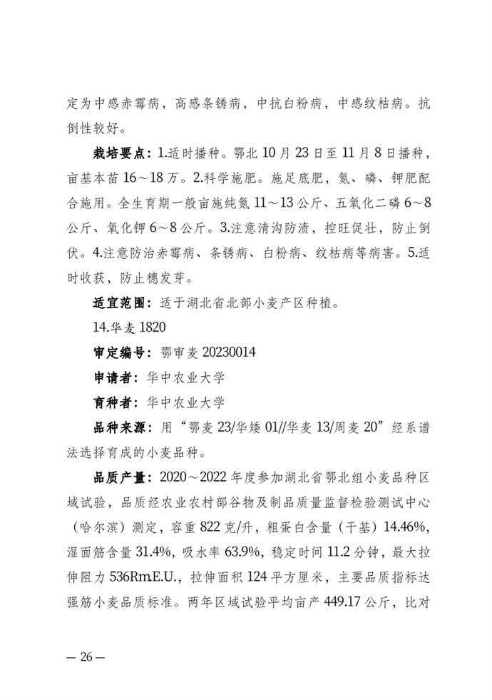 湖北省農業農村廳關于發布審定農作物新品種的通告20240118