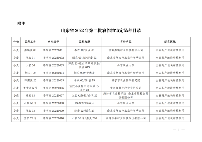 七屆山東省農作物品種審定委員會第十次常委會議審定通過了36個小麥新品種(審定品種目錄見附件),品種名稱等信息經公示無異議。