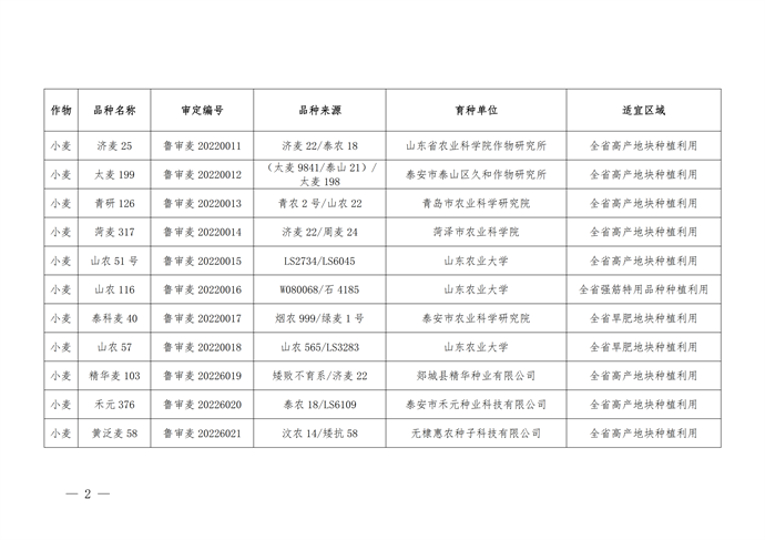 • 山東省2024年第二批主要農作物引種備案品種目錄