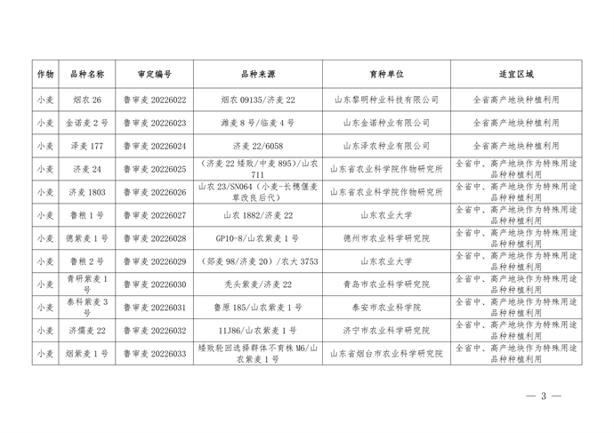 • 山東省2024年第三批主要農作物引種備案品種目錄