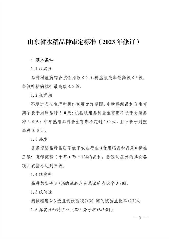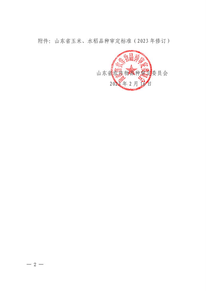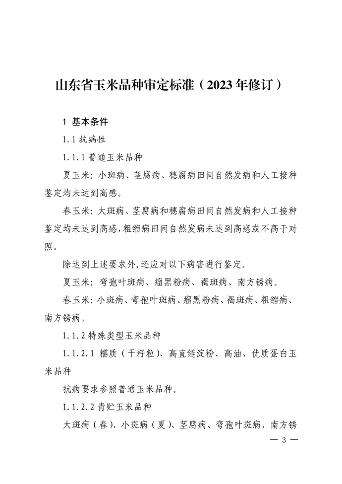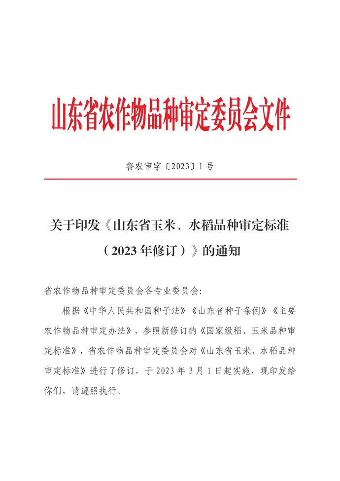 關于印發《山東省玉米、水稻品種審定標準(2023年修訂)》的通知