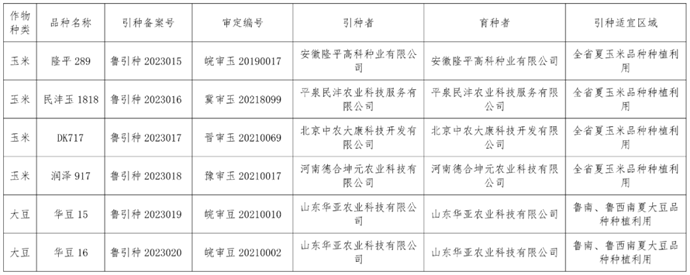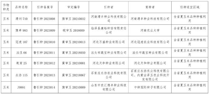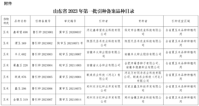 關于發布山東省2023年第一批主要農作物引種備案品種的通告