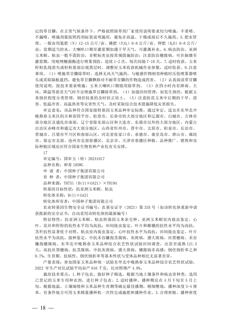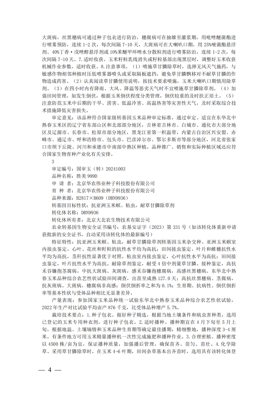 • 農業農村部公告第947號華皖763D等98個轉基因品