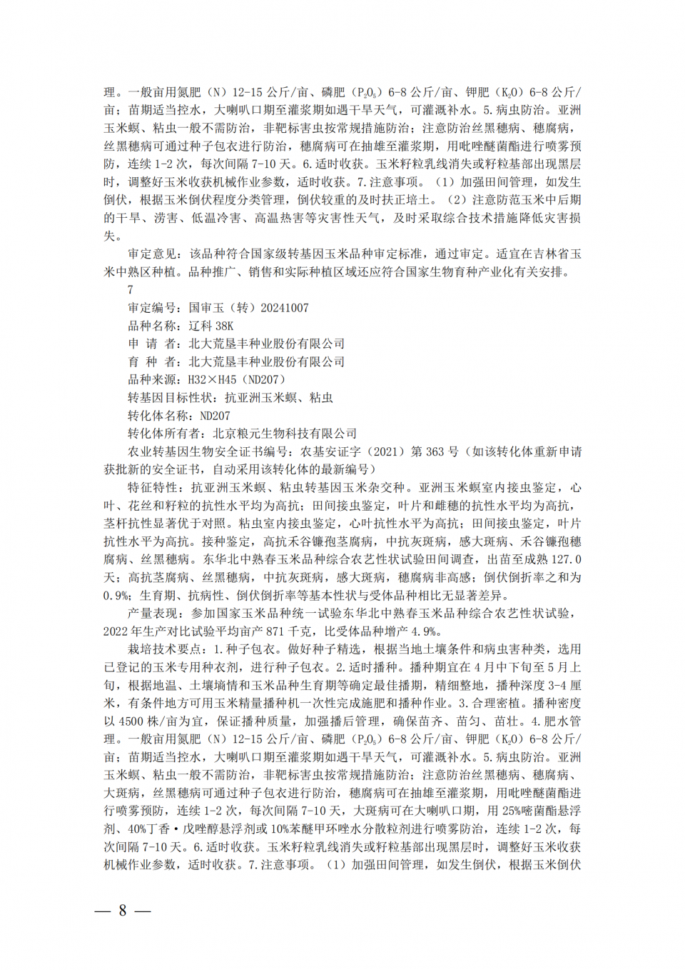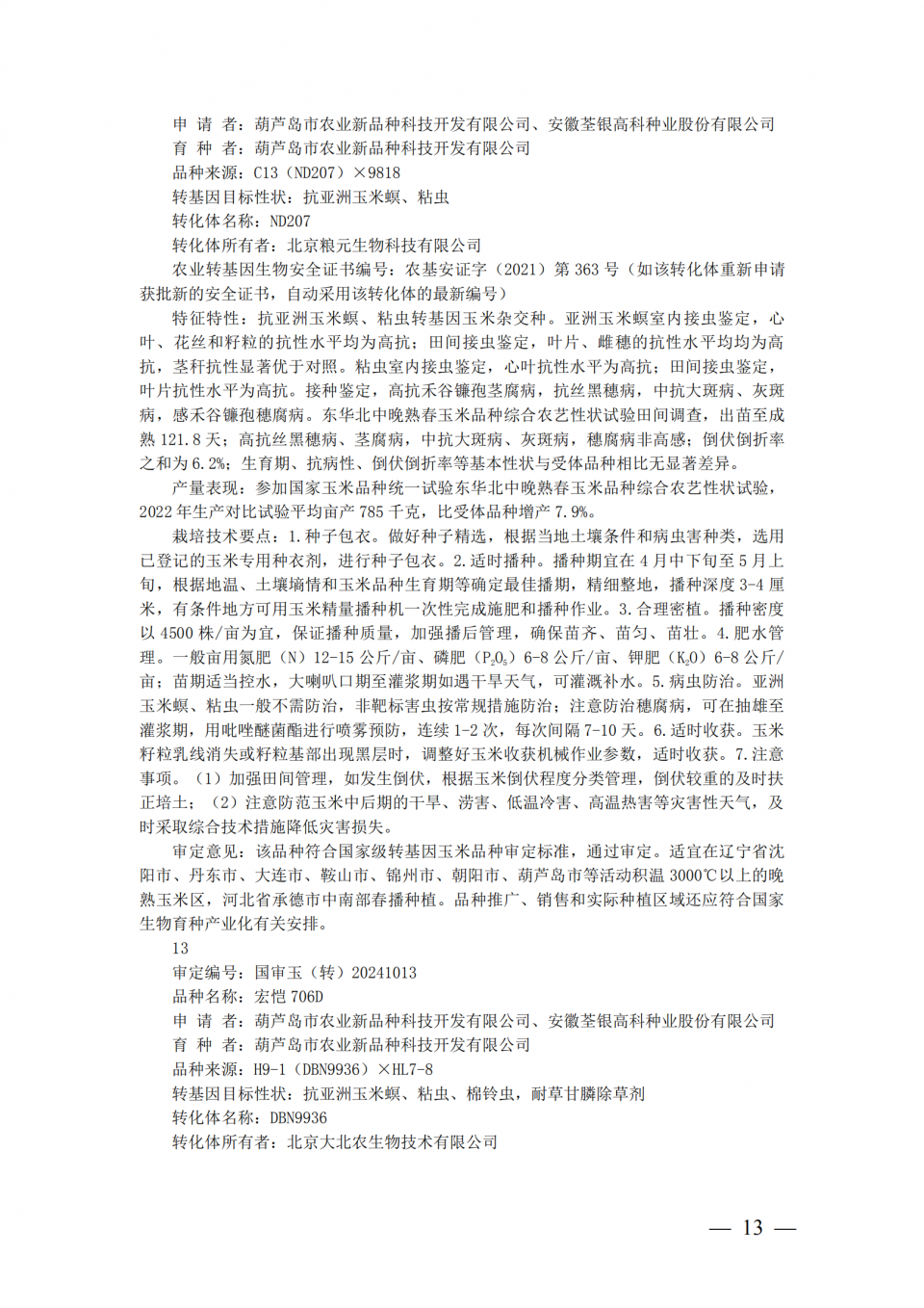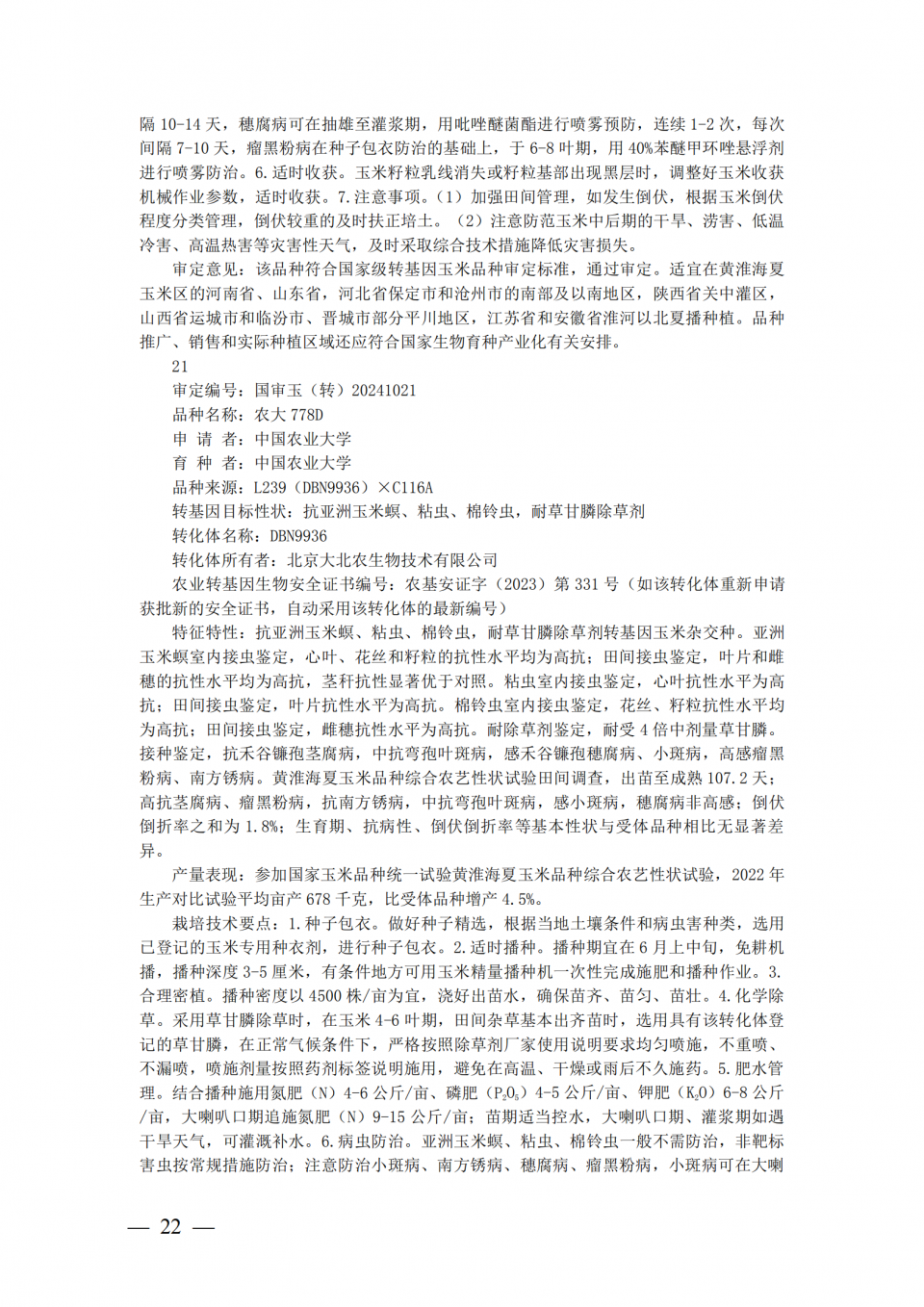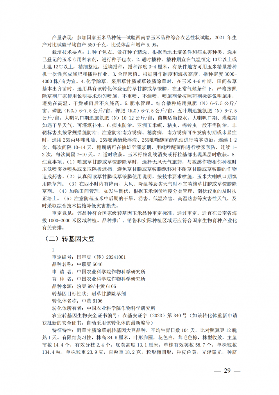 農業農村部公告第830號審定通過轉基因玉米、大豆品種