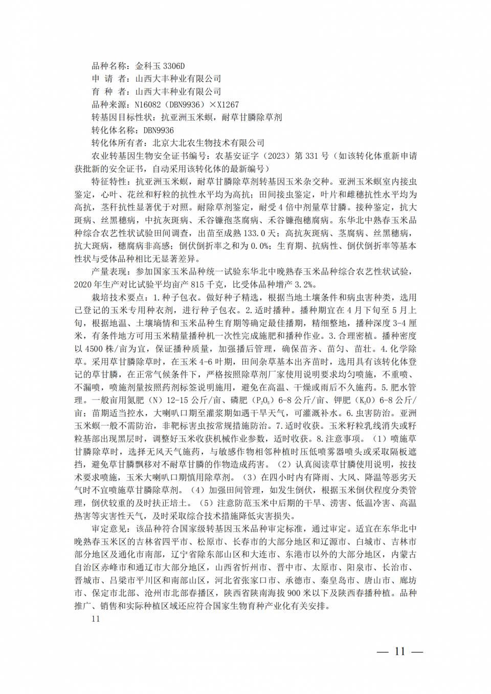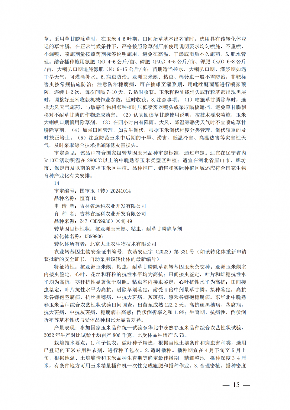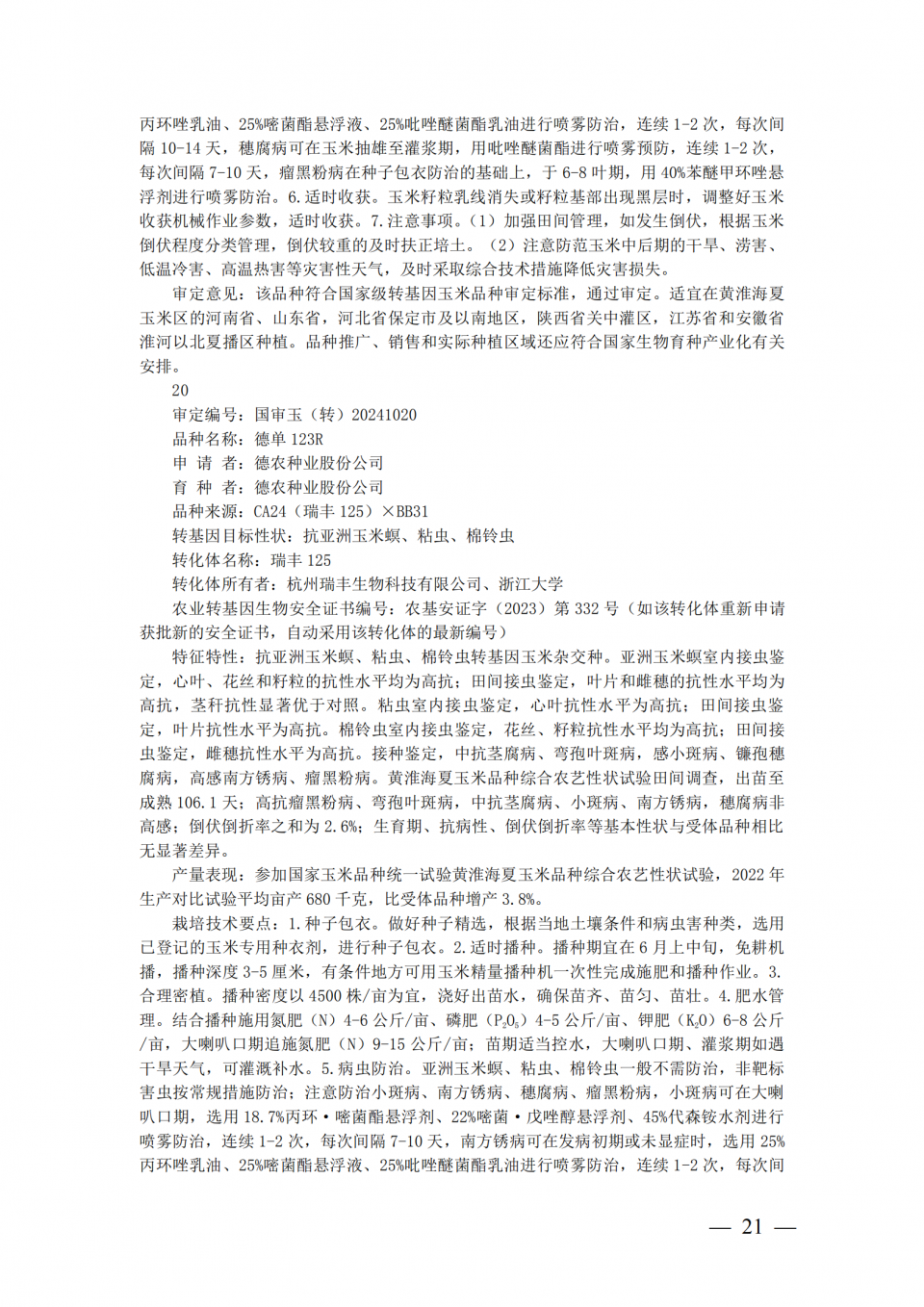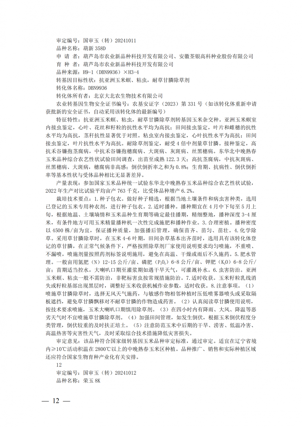 農業農村部公告第830號審定通過轉基因玉米、大豆品種