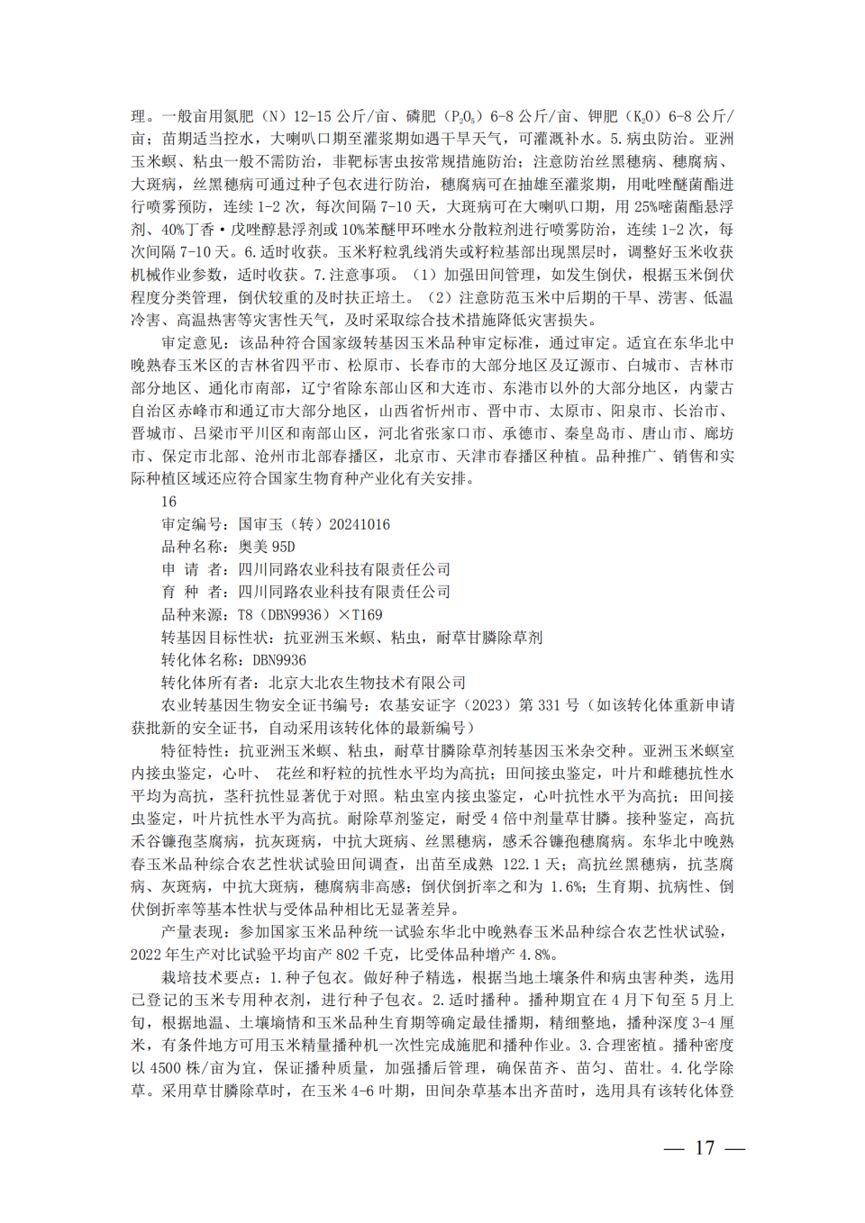 農業農村部公告第947號華皖763D等98個轉基因品種審定信息