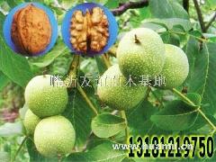 “8518”核桃有哪些特點? (1)早實性當年的嫁接苗80%以上的當年開花,有的座果,若嫁接的時間早,座果的的核桃可在樹苗上成熟,客戶買的核桃苗,大部分萌芽后即開花結果。 (2)豐產性:核桃苗定植第二年,大部分每棵結果達120多個,第三年每棵結果5斤以上,水肥條件較好地塊每棵樹結果達10斤,個別枝已有穗狀核桃由此逐步進入豐產期。5年達高峰產量,畝產過千斤。 (3)品質優:“8518”核桃堅果品質上等,各項質量指標均達到國家核桃堅果品質的優級果標準。平均單果重14克,果形端正,大小均勻,果面光滑,麻點少,殼厚1毫米(此厚度最具商品價值,太厚出仁率低,太薄無法運輸),手指可捏破,內褶壁退化,橫膈膜膜質薄,易取整仁,出仁率63.8%(大部分優良品種出仁率在50%左右,達到60%以上的很少),果仁飽滿,顏色淺,無澀味,風味香,口感好。 (4)易管理:“8518”核桃樹日常管理簡單,省工省錢。一般的果樹都需要修剪整形,產量才能有保證。而“8518”核桃樹萌生的側枝越多,產量越高,因而不需要修剪整型,任其自然生長即可。它的病蟲害也比較少。每年用于管理、防病治蟲的農藥、人工等的花費比葡萄、蘋果、桃等漿果類樹要省得多。 (5)抗病強:2004年夏季雨水較多,在省東平邑縣大陽鎮“香玲”核桃樹的炭疽病發病率達50%以上,個別樹達100%,而未噴殺菌藥的“8518”核桃樹發病率僅有5%。 (6)耐貯藏 :“8518”核桃堅果耐貯藏,常溫下可存放一年不變質。 (7)抗災害:“8518”核桃抗拒自然災害能力強。它耐旱、耐澇、耐瘠薄、抗風、抗冰雹、抗凍。核桃堅果外長著較厚的青皮,被冰雹擊傷后,對堅果影響不大,不會降低核桃的商品價值。任何一種果樹在花期和座果期都怕“倒春寒”,“8518”核桃能抵御零下5度的寒流,其他水果只能抵御2-3度的寒流。即使遇到超過零下5度的寒流,“8518”核桃的二次花也能結果,不會因此而絕產。 (8)食方便:“8518”核桃堅果食用方便,雙手一捏即可捏破,取整仁很容易,不需要錘頭砸,也不需要夾子夾,吃過的人都說好。8518核桃品種,是核桃芽變中選育而得,它突出的特點∶ 1、“8518”核桃當年嫁接的苗,80%以上當年開花,有的座果,如果嫁接時間早,座果的核桃可在樹苗上成熟。 2、核桃苗定植第二年樹都可結果,;第三年結果在2.5公斤左右,畝產就可達到100~150公斤,水肥條件好的地塊有的樹可結果5公斤左右,個別樹已有穗狀或串狀結果枝形成;核桃由此逐年進入豐產期,第五年起進入盛果期,比較瘠薄的山坡地畝產一般在300~400公斤,水肥條件好的地塊,畝產可過500公斤,是國內目前唯一畝產過千斤的核桃品種。 3、“8518”核桃堅果品質上等,各項質量指標均達到國家核桃堅果品質的優級果標準。平均單果重14克,果形端正,大小均勻,果面光滑,麻點少,殼厚1毫米(此厚度最具商品價值,太厚出仁率低,太薄無法運輸),手指可捏破,內褶壁退化,橫膈膜膜質,易取整仁,出仁率63.8%(大部分優良品種達到60%以上的很少),果仁飽滿,顏色淺,無澀味,風味香,口感好。 4、“8518”核桃樹萌生的側枝越多,產量越高,因而不需要修剪整型,任其自然生長即可。病蟲害少,每年用于管理、防病治蟲的農藥、人工等的花費比葡萄、蘋果、桃等漿果類樹要省得多。 5、“8518”核桃抗病力強。夏季雨水較多未噴殺菌藥的“8518”核桃樹發病率僅有5%。 6、“8518”核桃耐旱、耐澇、耐瘠薄、抗風、抗冰雹、抗凍。核桃堅果外長者較厚的青皮,被冰雹擊傷后,對堅果影響不大,不會降低核桃的商品價值。任何一種果樹在花期和座果期都怕“倒春寒”,“8518”核桃能抵御零下5度的寒流,即使遇到超過零下5度的寒流,“8518”核桃的二次花也能結果,不會因此而絕產。 7、“8518”核桃堅果耐貯藏,常溫下可存放一年不變質。 8、“8518”核桃堅果食用方便,雙手一捏即可捏破,取整仁很容易,不需要錘頭砸,也不需要夾子夾,吃過的人都說好。“8518”核桃之所以高產主要有兩點:一是結果呈穗狀或串狀,二是內膛枝結果。普通核桃只是單枝結果,大部分座果一到二個,三個的很少,內膛枝不結果。“8518”核桃對水肥、土質及氣候條件沒有特殊嚴格的要求,只是在栽植和緩苗期間要澆幾次水,肥料適宜各種化肥和農家肥。對各種類型的土質都適應,只要氣溫不低于零下39度的地區都可以栽植核桃。