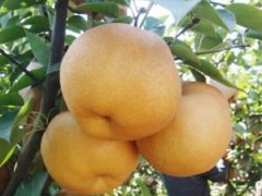 秋月梨:"秋月梨"果形端正、果實整齊度高。果形為扁圓形,果形指數0.8左右,果實大小整齊,商品果率高。平均單果重450g,最大可達1000g左右。果皮黃紅褐色,果色純正;果肉白色,肉質酥脆,石細胞極少,口感清香,可溶性固形物含量14.5%左右,較南水甜味稍淡。果核小,可食率可達95%左右,品質上等,貯藏后不變味(無酒精等異味)。無采前落果,采收期長。在臨沂地區,果實于9月中下旬成熟,生長期150天左右。畝栽110株,220株,333株。