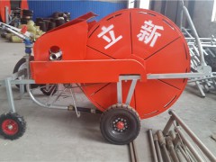 JP系列絞盤式噴灌機是一種由水渦輪驅動的自動行走式機械,它通過壓力水進入水渦輪,利用水的動能驅動水渦輪旋轉,水渦輪的旋轉經多功能變速箱裝置帶動絞盤旋轉、拖動PE管實現噴頭車均勻回收,同時,壓力水進入PE管傳送到噴頭,實現噴頭正常噴灑,它主要由底盤、機架、絞盤、PE輸水管、自動調速裝置、水渦輪驅動裝置、變速箱、噴頭車、導向裝置、安全裝置等幾部分組成。該機結構簡單、自動化程度高、適應性強、操作方便并可多級變速,是適合我國國情的理想的節水型灌溉機具之一,單噴頭絞盤式噴灌機主要適用于霧化批標要求較低的作物。
