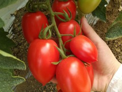 羅曼型大紅番茄,無限生長型,早熟,果實長橢圓型,萼片平展,每穗坐果數8-10個,單果重80克左右,坐果均勻一致,可成串采收,連續坐果能力強,硬度好,口感好。高抗番茄黃化曲葉病毒病、抗根結線蟲等,適合北方春秋大棚或南方露地種植。