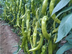 果(guo)(guo)(guo)重180克(ke)左右,果(guo)(guo)(guo)型大(da) ,產(chan)量極(ji)高(gao)。果(guo)(guo)(guo)皮光澤度好,果(guo)(guo)(guo)實淺黃綠色,果(guo)(guo)(guo)肉厚,辣味適(shi)中,商(shang)品性(xing)佳(jia),抗逆(ni)性(xing)及(ji)(ji)抗病(bing)性(xing)強。適(shi)合(he)春秋拱棚及(ji)(ji)越冬溫(wen)室栽培。