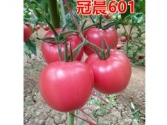 冠晨601:荷蘭進口,無限生長型粉果番茄,植株長勢旺盛。抗TY病毒,抗根結線蟲,抗葉霉,耐葉斑等常見易發病害。果實正圓,萼片美觀,顏色鮮亮,精品率高,平均單果重240克左右,持續座果能力強,產量高。果皮厚,硬度好,耐儲運。膨果速度快,早熟性好,適合春秋保護地栽培種植。