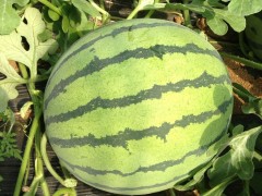 設施基地專用品種,早熟,自開花到成熟28天左右。耐低溫,耐弱光,抗裂果,果實正圓型,果皮青綠著黑色窄條,不亂紋,外觀美麗誘人,果肉鮮紅,脆甜可口,汁多味濃,梯度小,中心含糖量12度。單瓜重7-8kg,易坐果,膨果快,豐產性好。皮薄耐裂,抗性好,商品性極高。