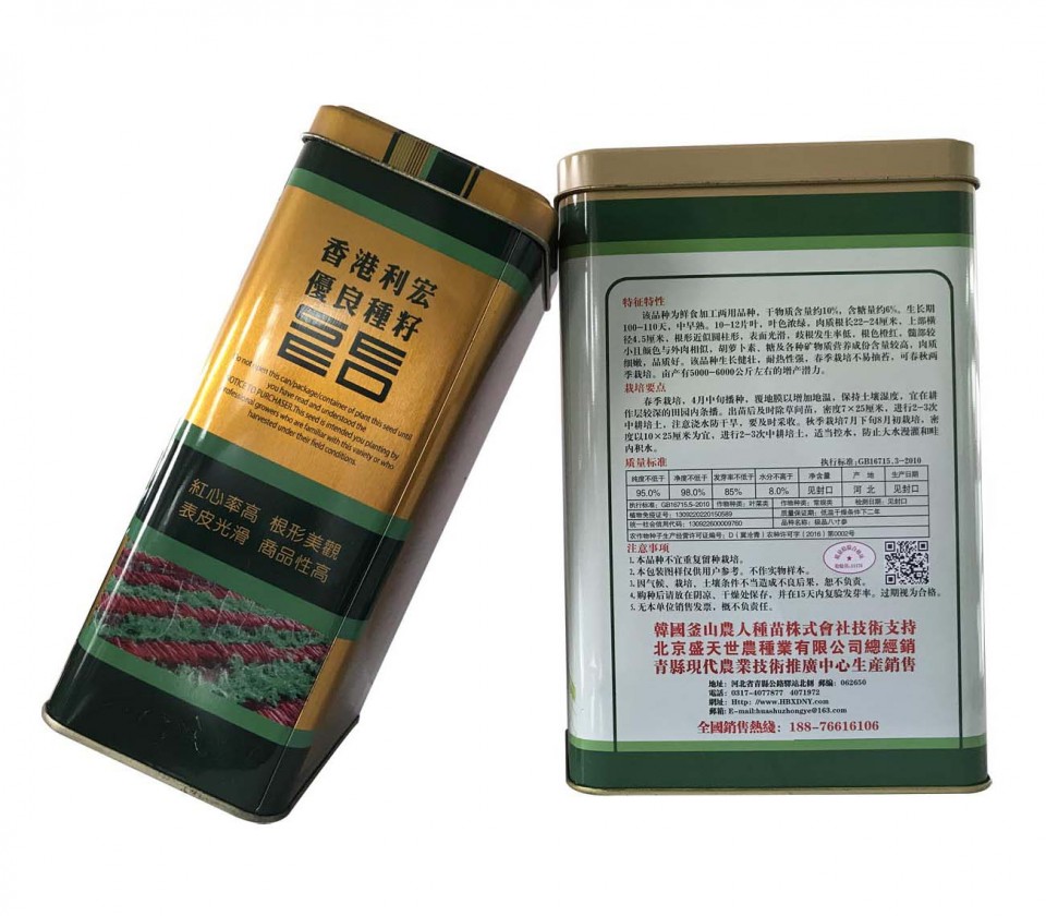 今天的這款韓農紅參鐵罐,是根據客戶要求進行設計的。鐵盒外包裝采用的工藝印刷為四色印刷,圖案的設計是應時代潮流,符合消費者購買習性而精心設計,讓您的產品具有金屬感,提升紅參種子的檔次,讓您的產品在激烈的競爭中脫穎而出,何樂而不為呢?