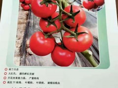 大紅果番茄,高抗病毒,雜交一代,生長旺盛,節間短,連續坐果能力強,果實均勻飽滿,硬度高石頭果,高圓果型,單果重260克左右,萼片伸展美觀,顏色鮮紅亮麗,耐運輸可串收,抗葉斑葉霉葉部病害抗病能力強,