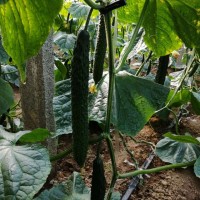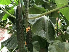 本品種為雜交一代,植株長勢強,葉片中等,主蔓結瓜為主,瓜碼密,瓜條生長速度快,不歇秧,連續坐瓜能力強,瓜條順直,黑油亮刺密把短,瓜肉淺綠,味甜,瓜長35厘米左右,商品性好,雙親均選用抗病親本,高抗枯萎病,霜霉病,角斑病和白粉病,耐低溫弱光,越冬培育苗畝產4萬斤左右,適合溫室大棚及早春拱棚種