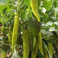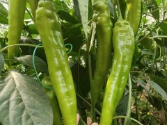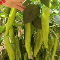 日本引進,雜交一代,無限生長型,植株長勢旺盛。果實淺黃綠色,長30-40cm,直徑5cm左右,單果重4-5兩左右,辣味適中,商品性佳。適合早春,秋延拱棚及越冬溫室栽培。建議每畝地栽培2000株。