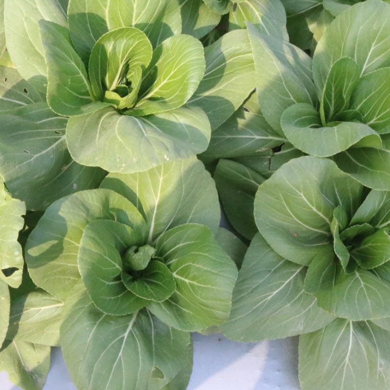 品種主要性狀:大頭束腰,株高28cm,開展度28-30cm,葉面光滑,葉片亮綠色,廣卵圓形,葉柄淺綠色,寬度略凹,成株采收葉片數22-25片,單株重600-700g。外形優美,商品性好,豐產優,可周年栽培,比“上海青”增產40%左右。優勢明顯,生長快,適應性強,特耐熱,抗病,耐澇。在伏天病蟲發生期,受害株率顯著低于其他品種。味清淡略有甜味,纖維少。菜秧栽培,拔節不明顯。